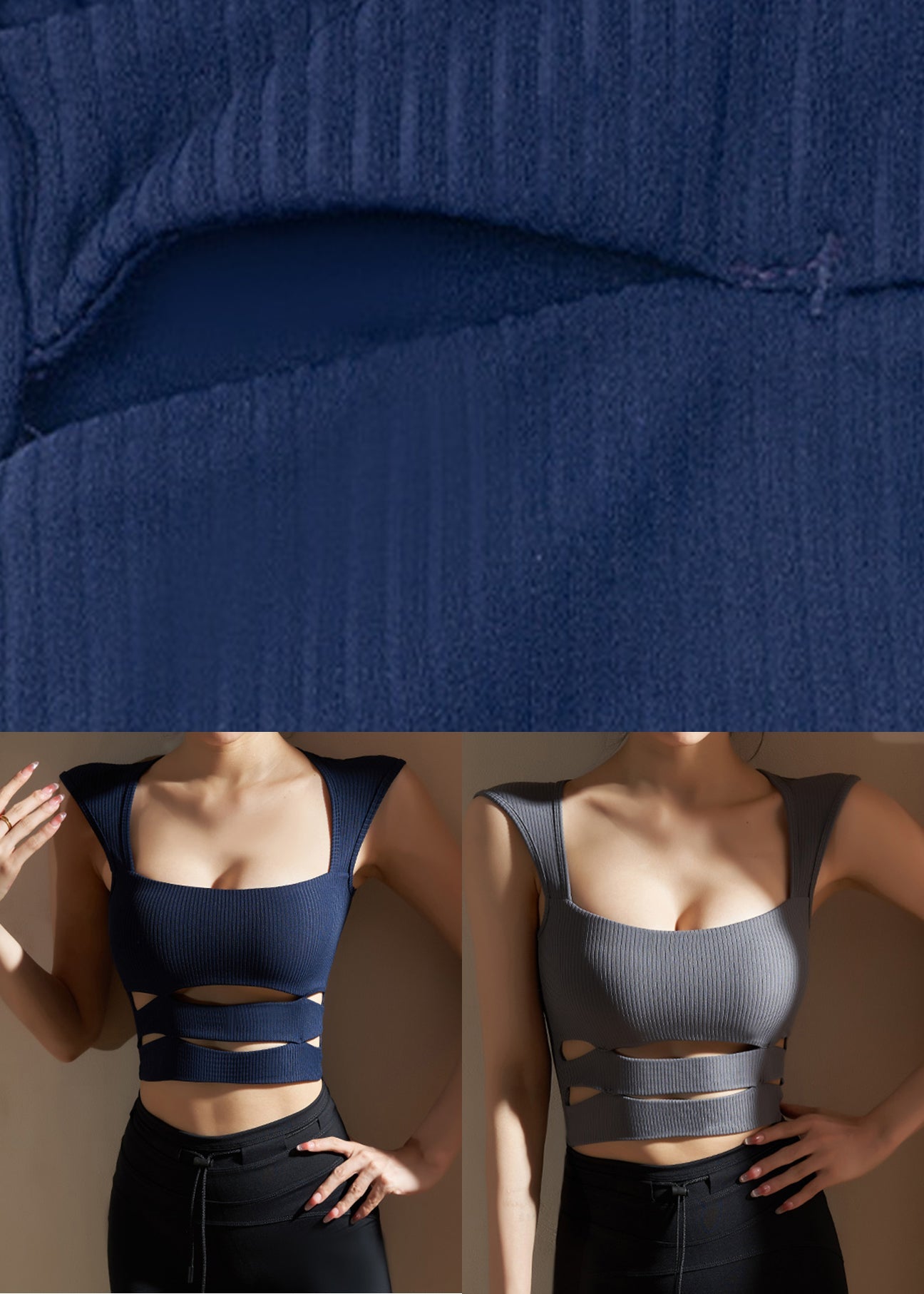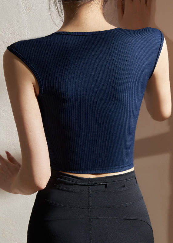 Luxury Dark Blue Striped Yoga Tops Sleeveless