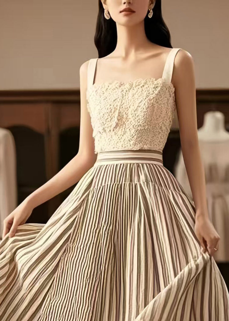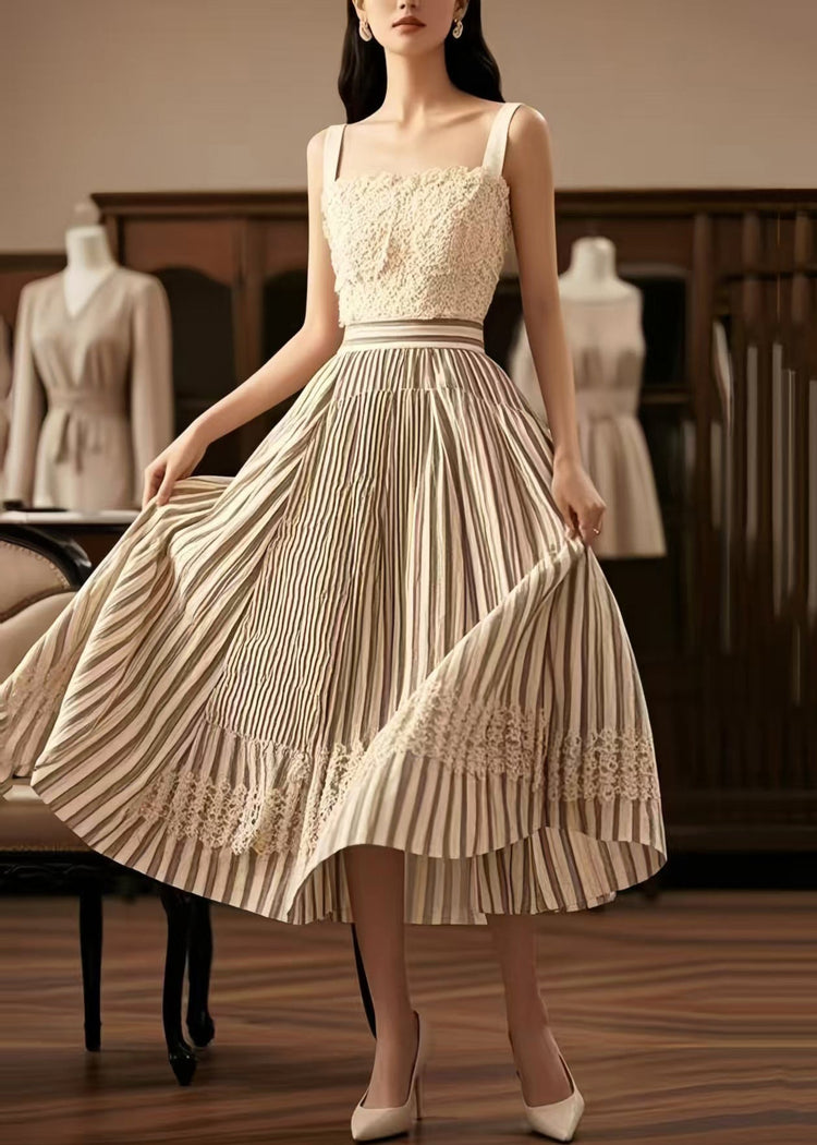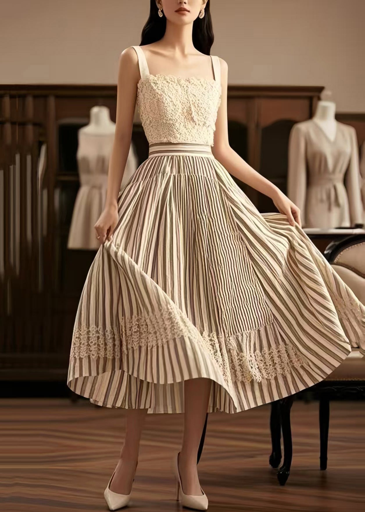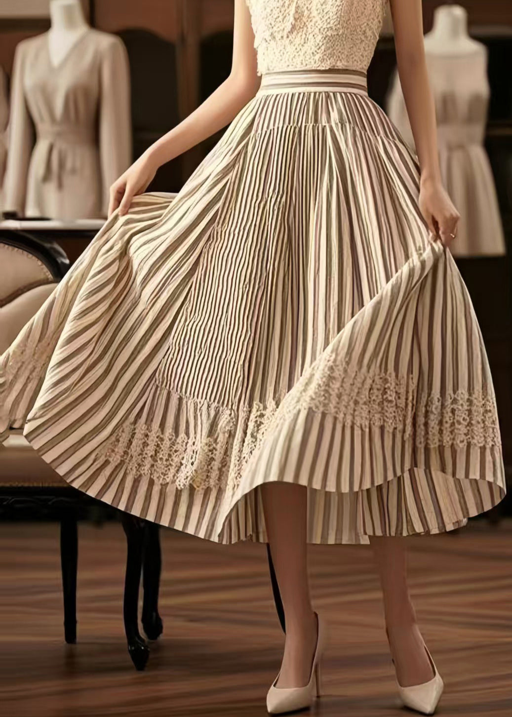 Casual Apricot Striped Exra Large Hem Cotton Skirts Summer