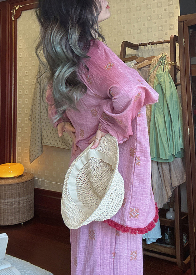 Loose Purple O Neck Print T Shirt And Pants Cotton Pajamas Two Piece Set Fall