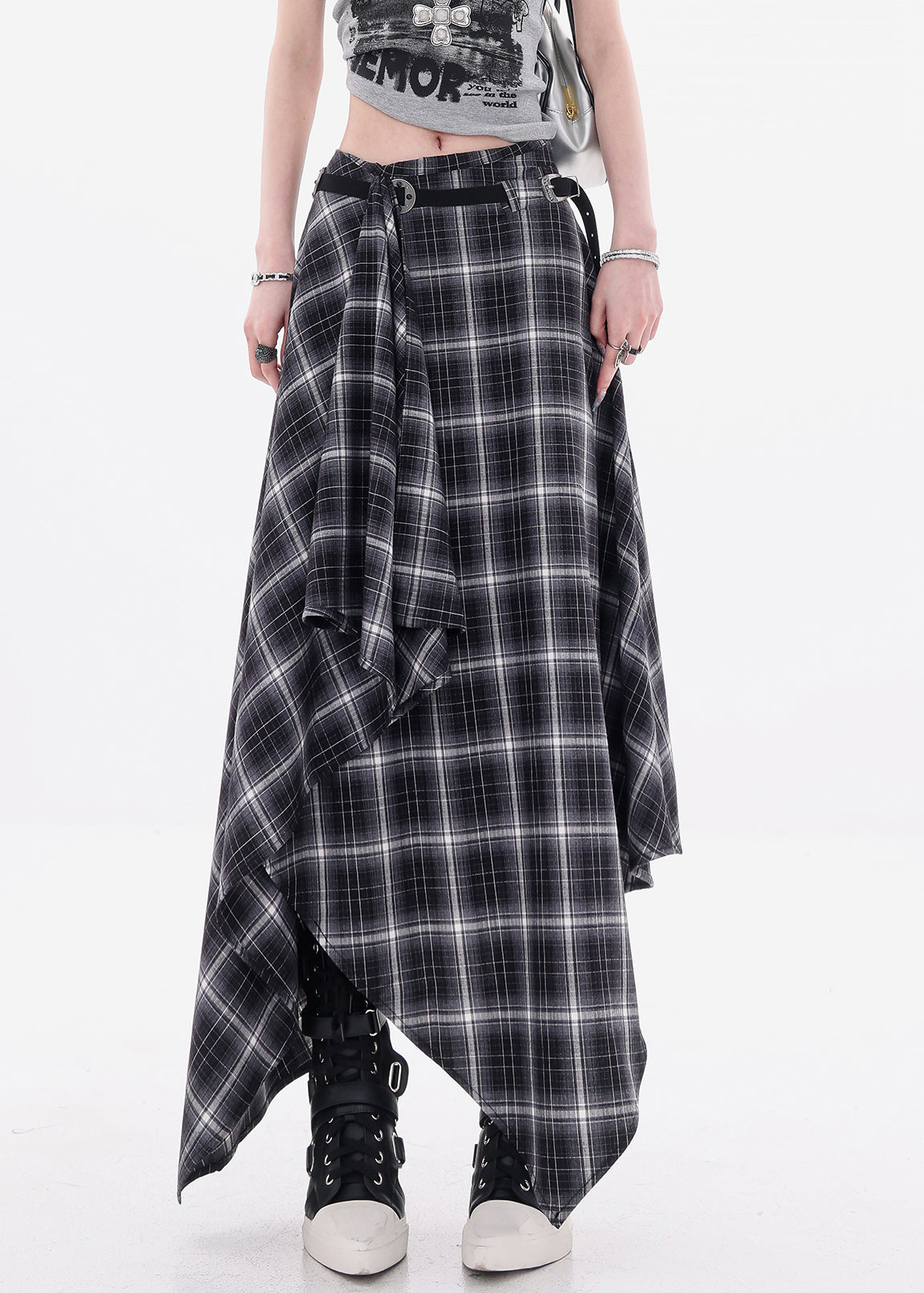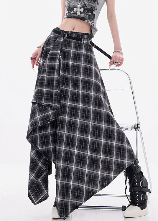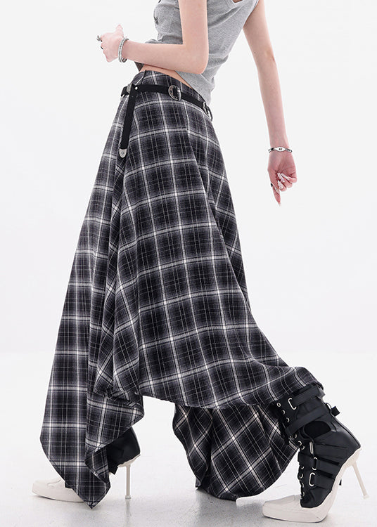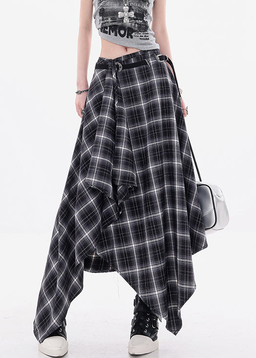 Art Black Asymmetrical Plaid Cotton Skirts Fall