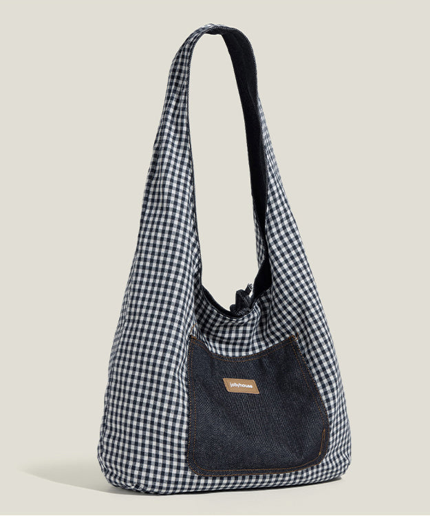 Boho Red Plaid Patchwork Large Capacity Canvas Satchel Handbag