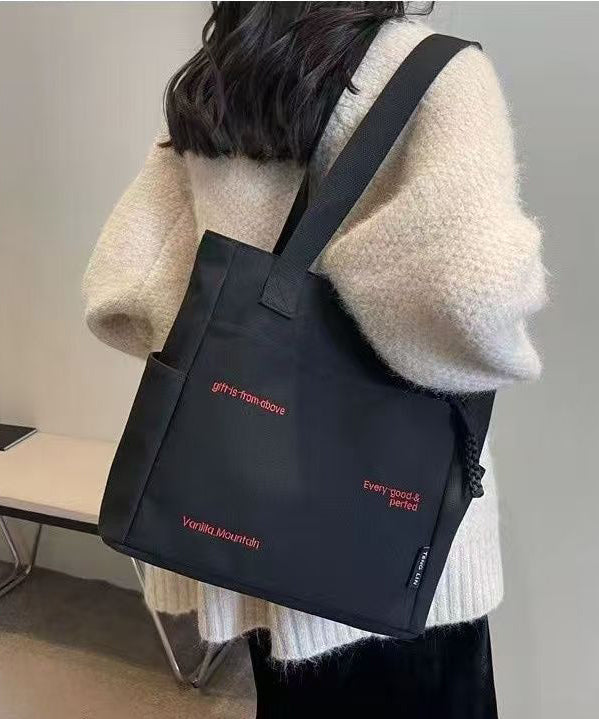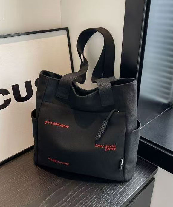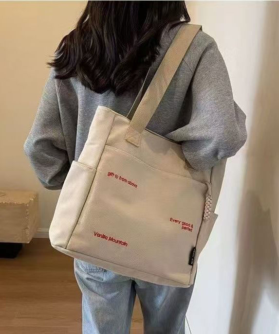 Boutique Brown Letter Embroidery Solid Durable Canvas Shoulder Bags