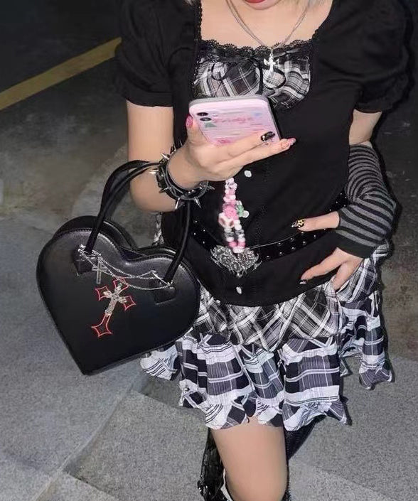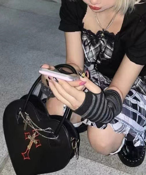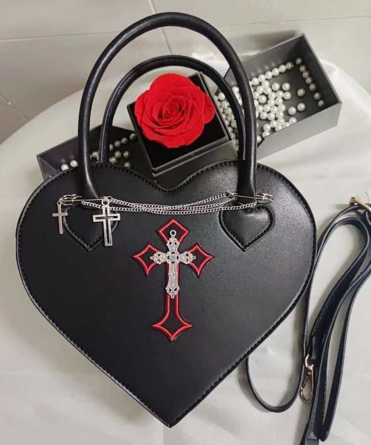 Chic Black Love Shape Chain Linked Faux Leather Tote Handbag