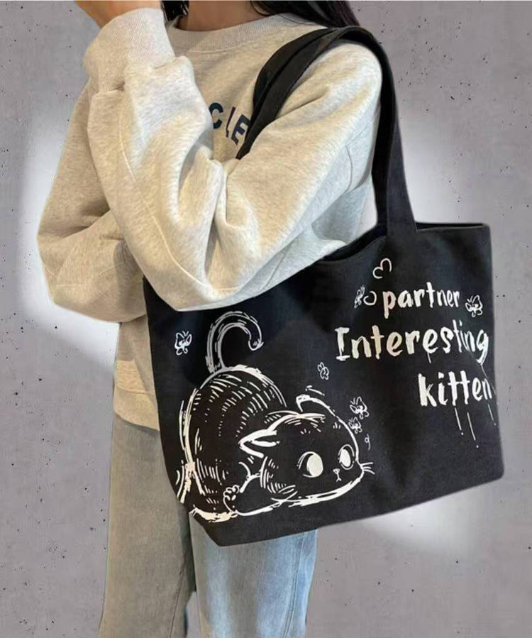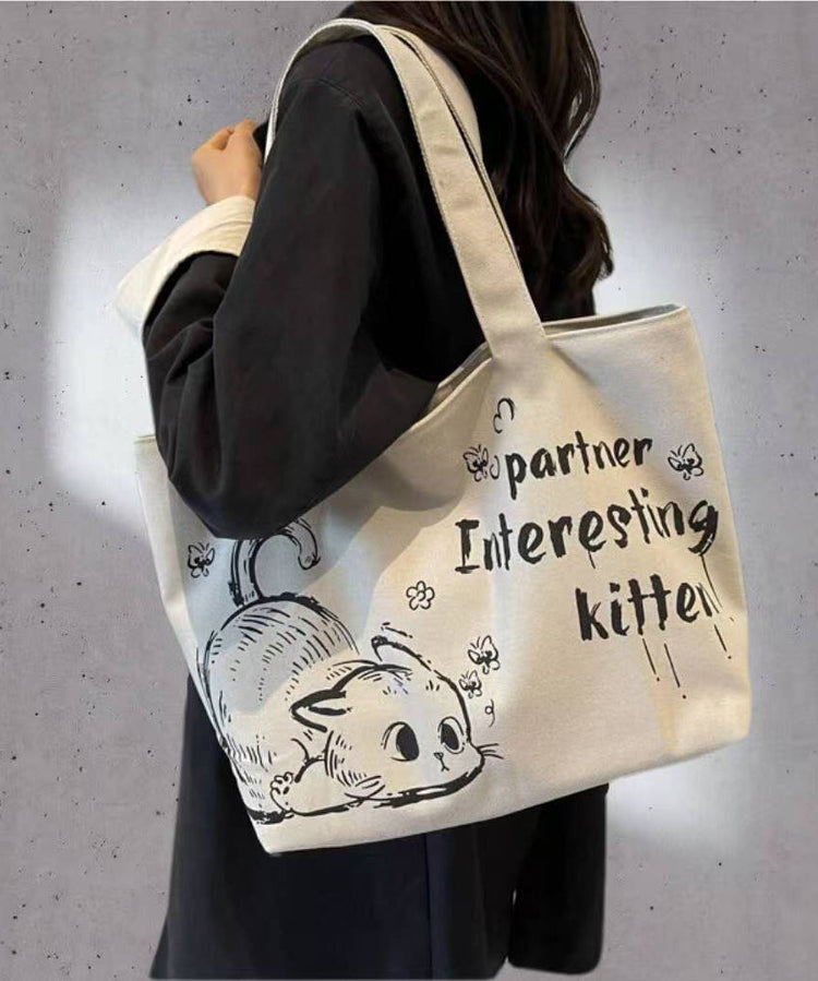 Elegant Character Print Large Capacity Canvas Satchel Handbag