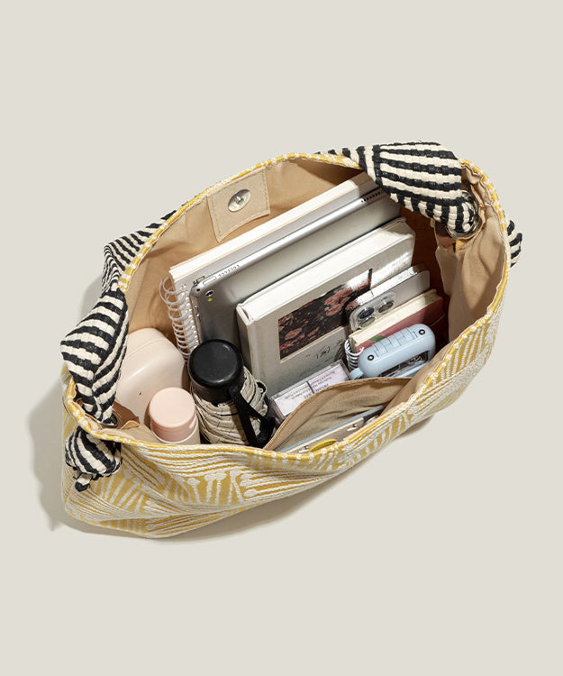 Fine Yellow Jacquard Large Capacity Cotton Shoulder Bags