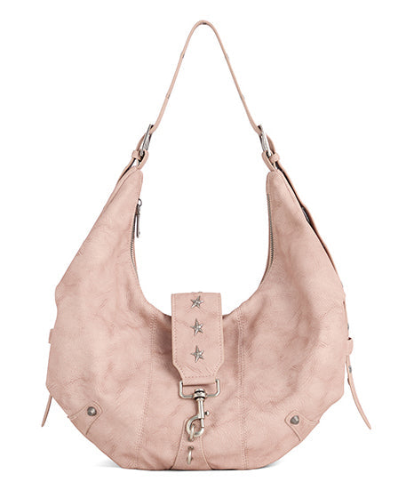 Stylish Light Blue Rivet Solid Durable Faux Leather Saddle Bag