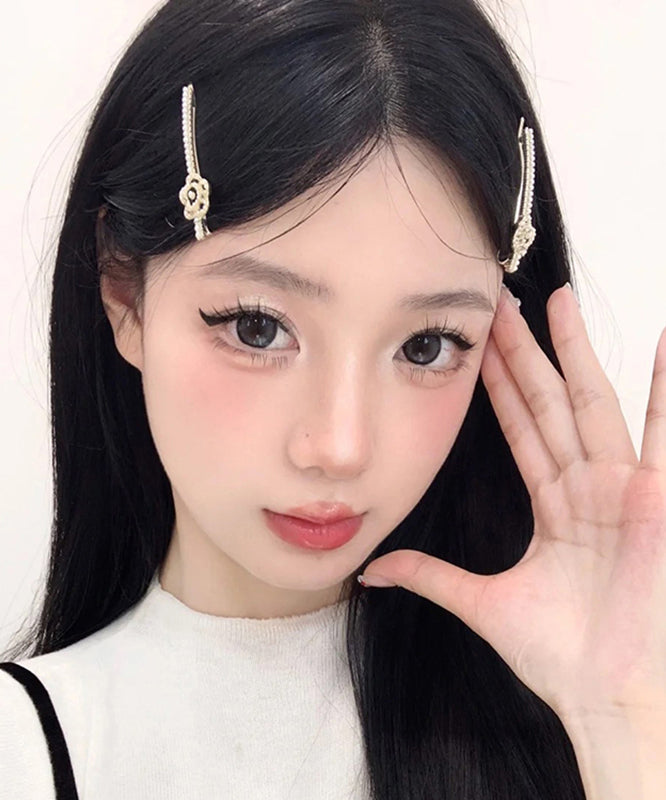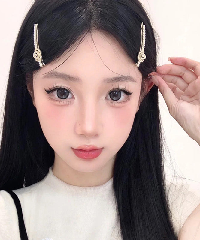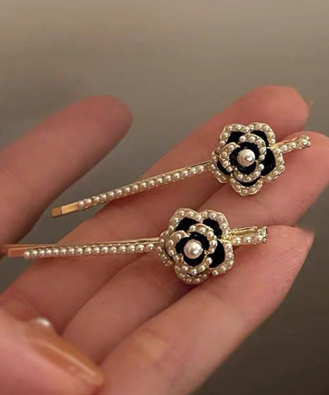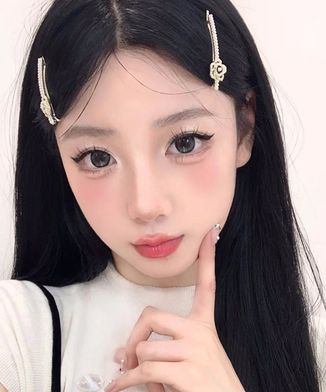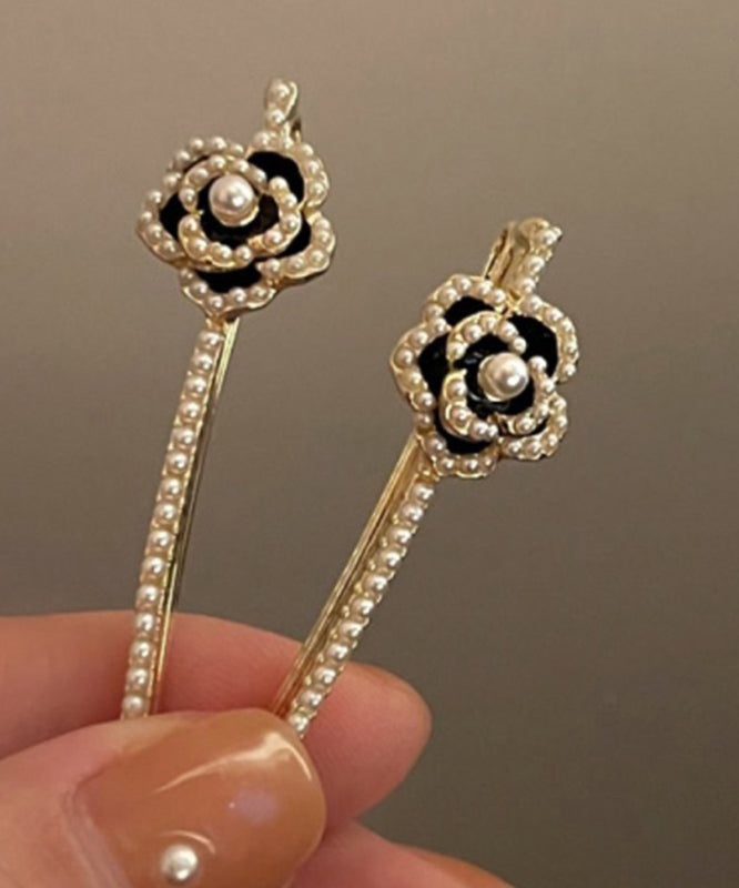 Art Gold Sterling Silver Alloy Zircon Floral Pearl Hairpin