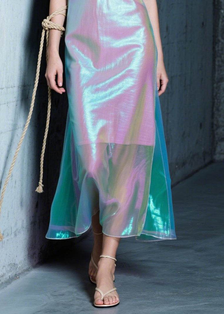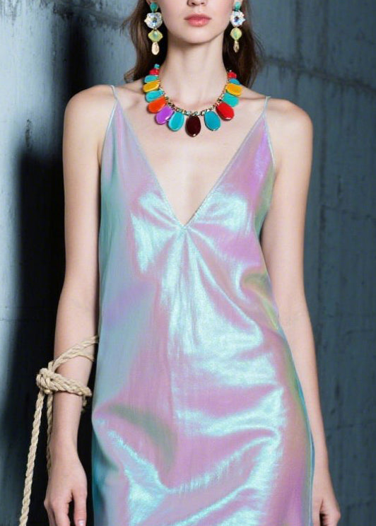 Beautiful Purple V Neck Silk Spaghetti Strap Dress Summer