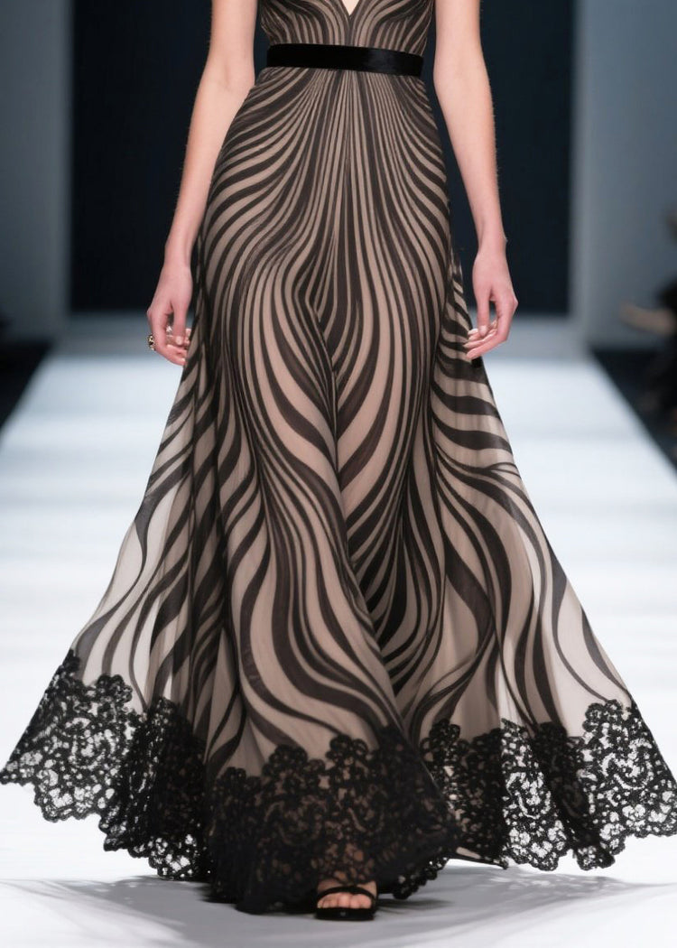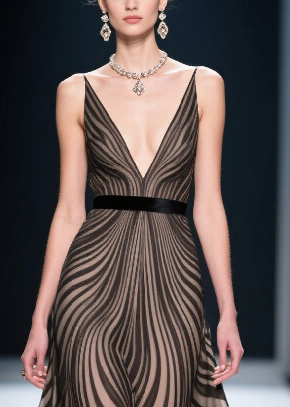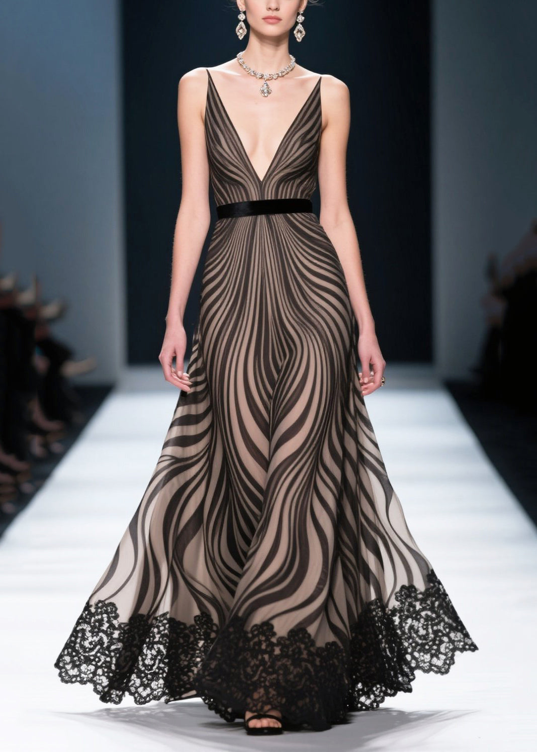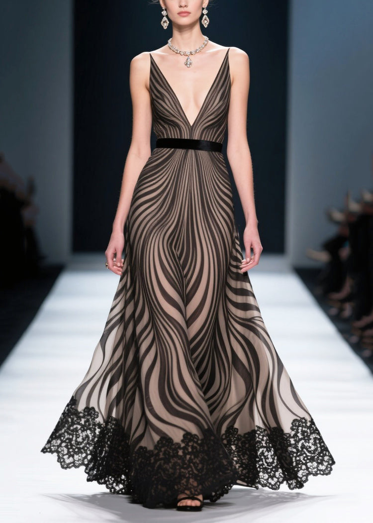Black Zebra Pattern Chiffon Party Dresses Exra Large Hem Summer