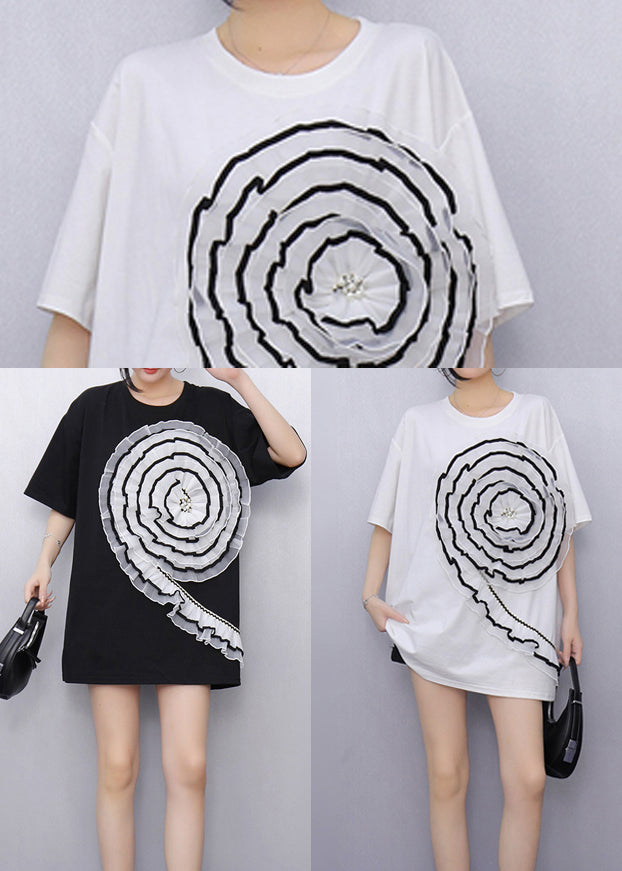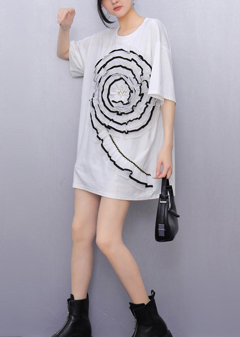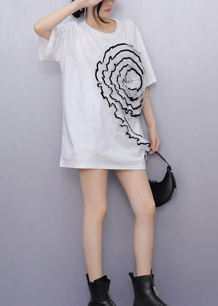 Bohemian White Ruffled Floral Decorated Cotton Tanks Summer