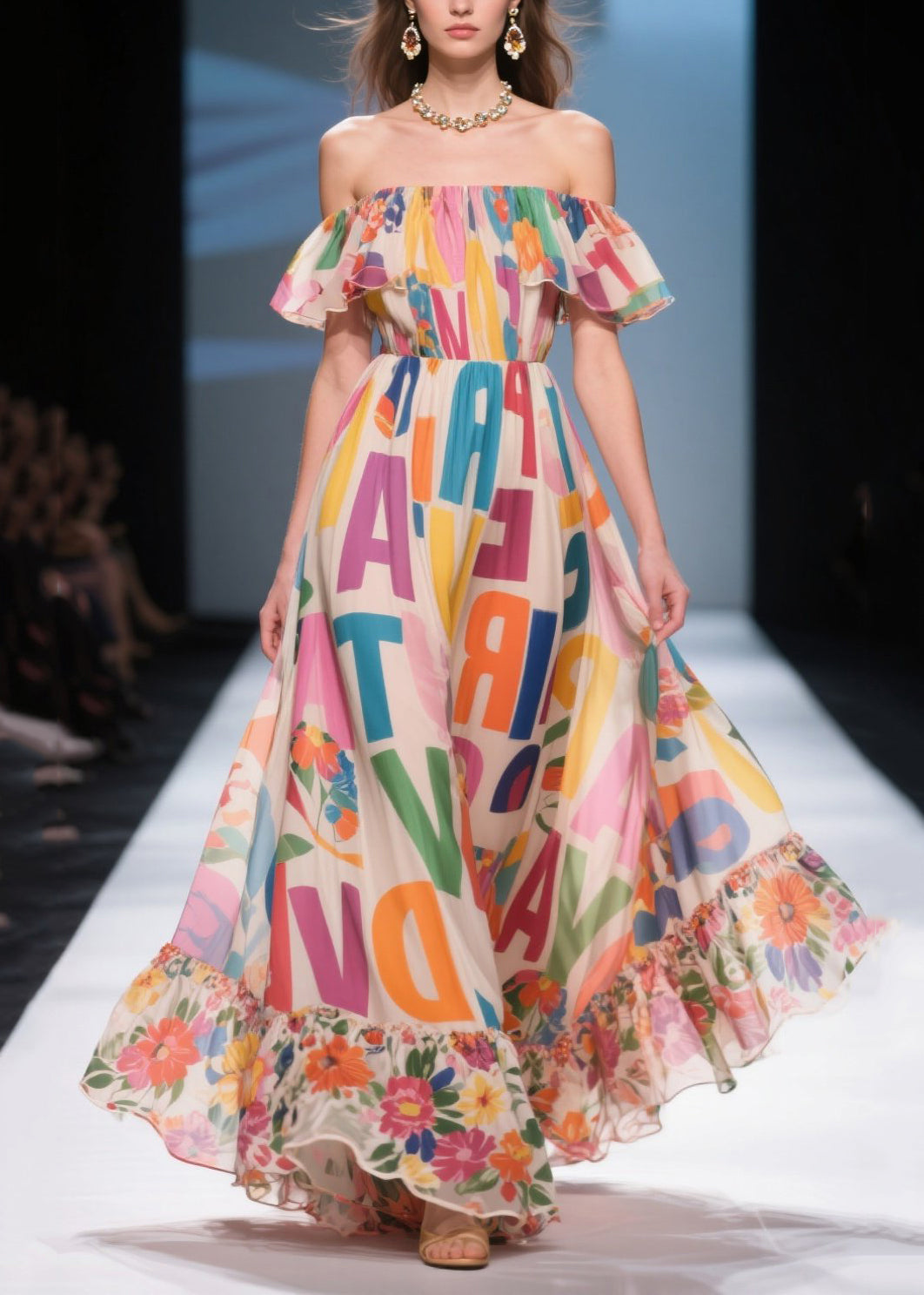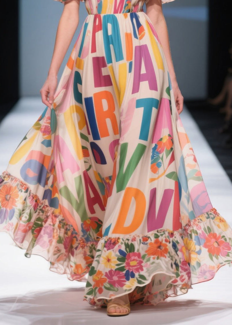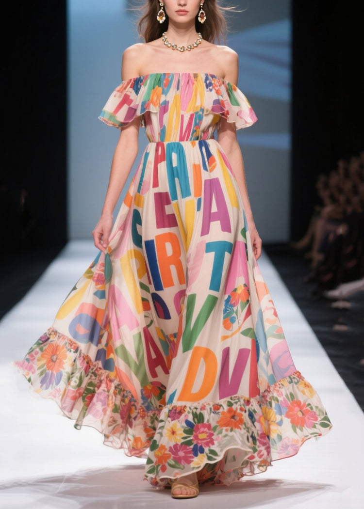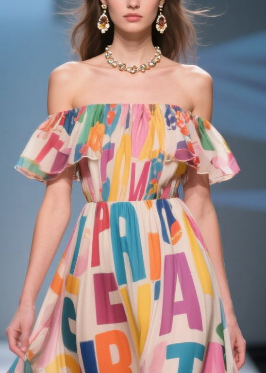 Boho Beige Cold Shoulder Print Chiffon Beach Dress Summer