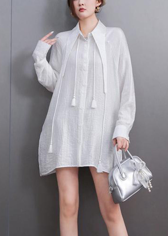 Brief White Peter Pan Collar Tassel Shirts Fall