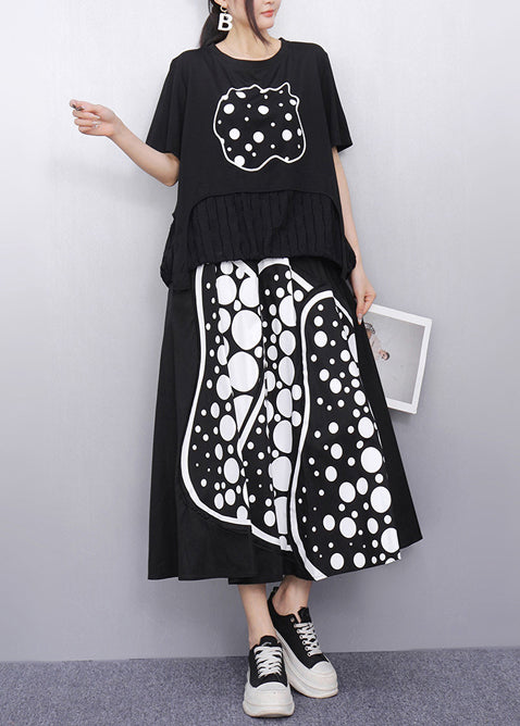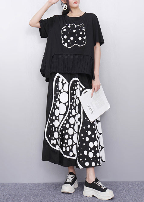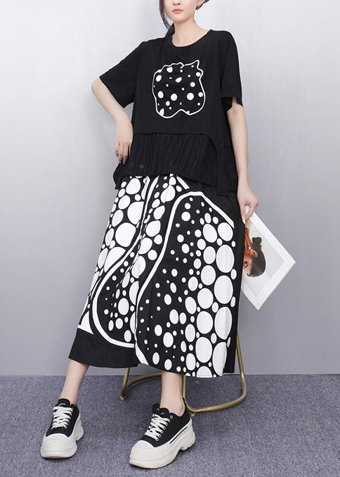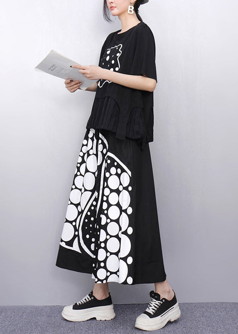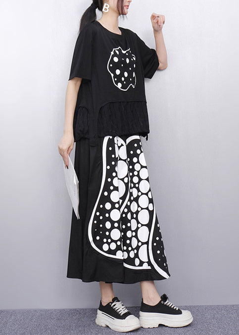 Casual Black Print Patchwork Cotton Two Pieces Set Summer