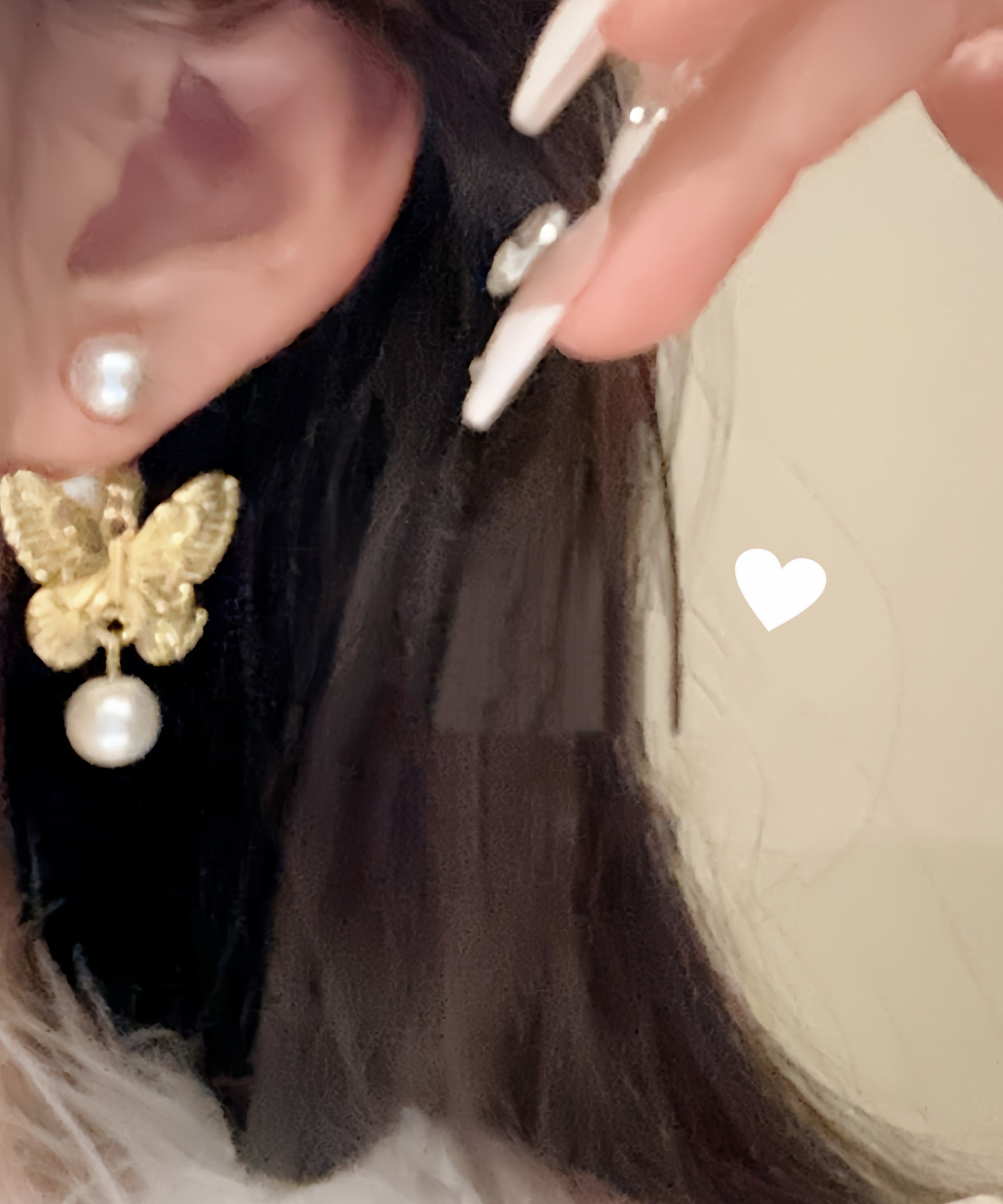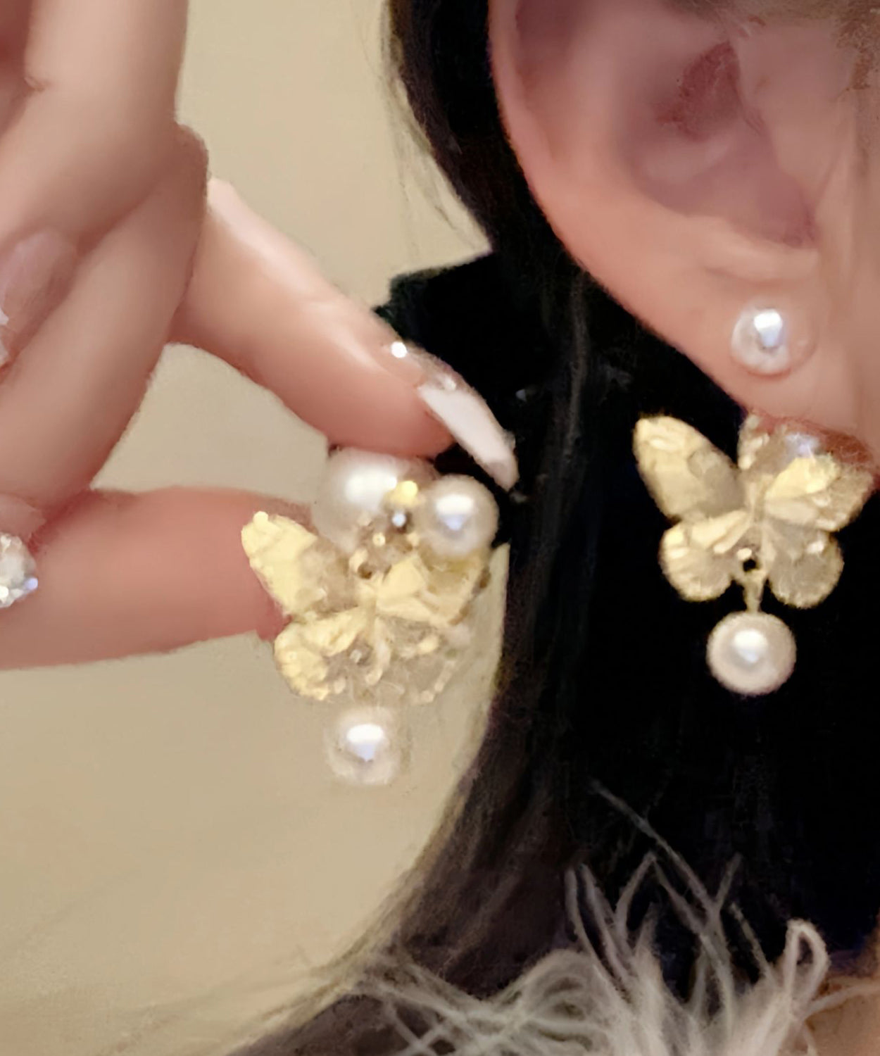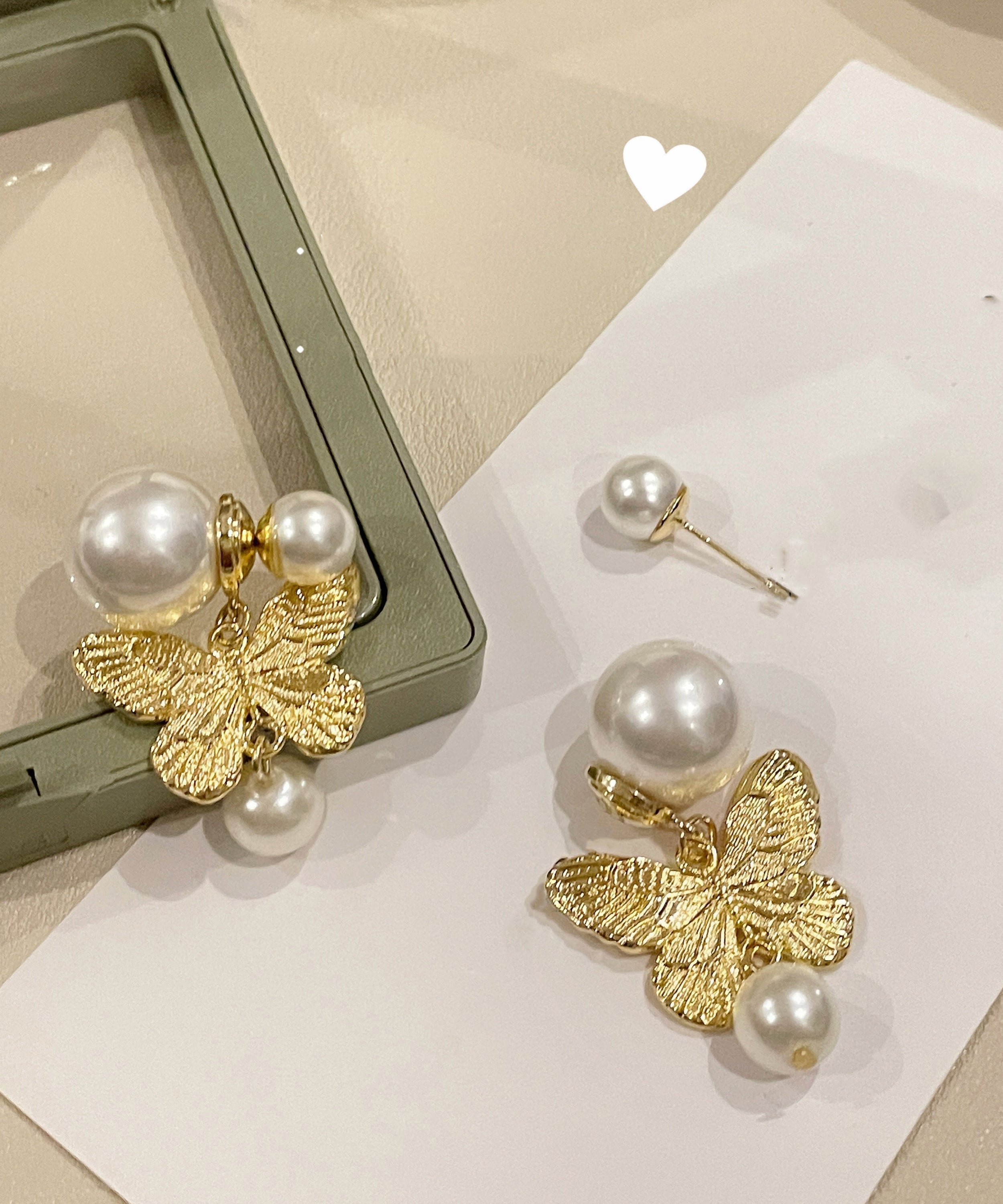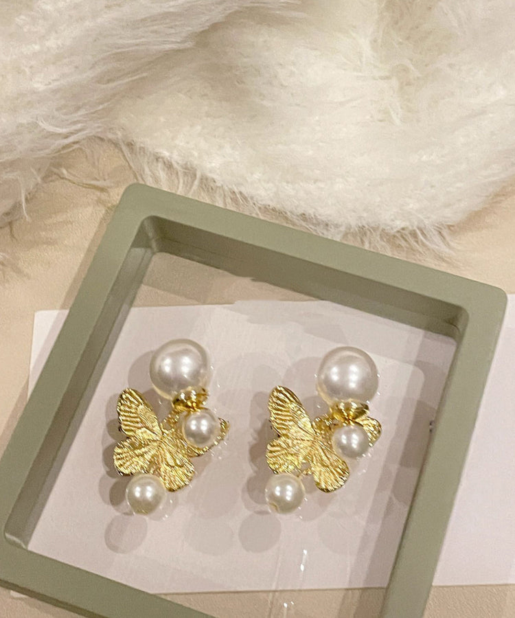 Casual Gold Copper Alloy Butterfly Pearl Drop Earrings