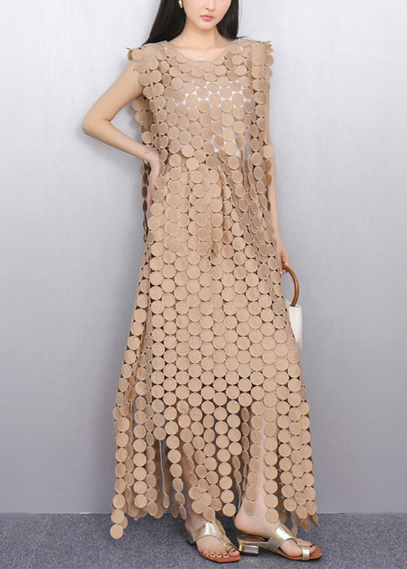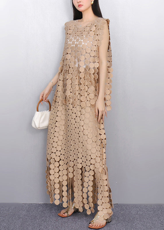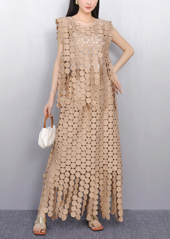 Champagne Hollow Out Lace Top And Maxi Skirts Two Pieces Set Summer