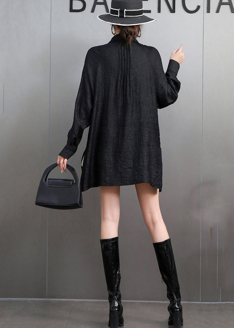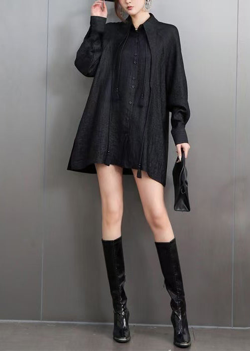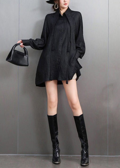 Chic Black Tasseled Oversized Cotton Blouses Fall