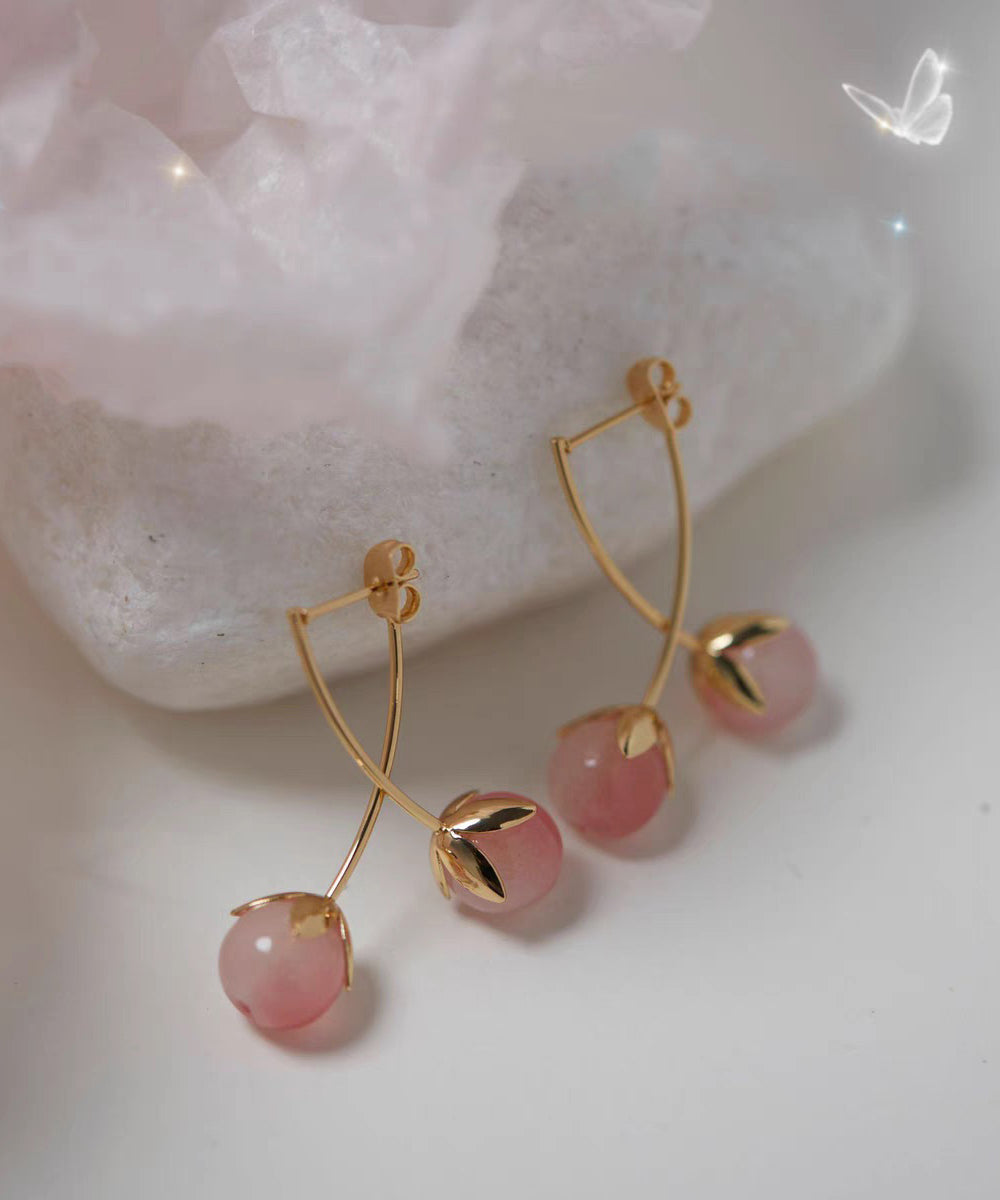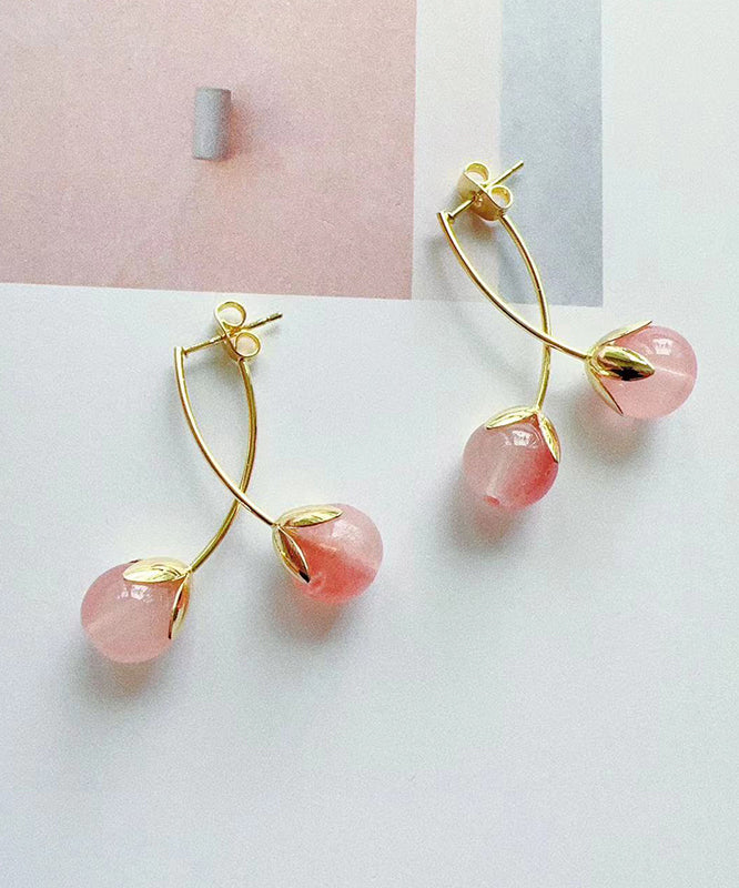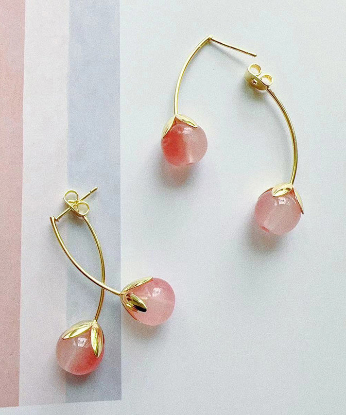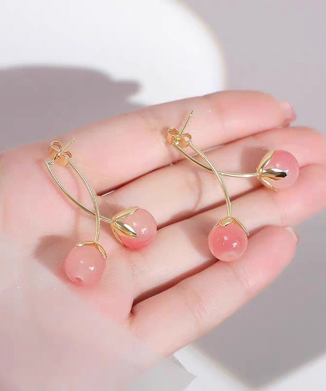 Cute Peach Sterling Silver Overgild Resin Tomato Hoop Earrings