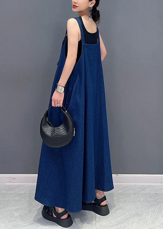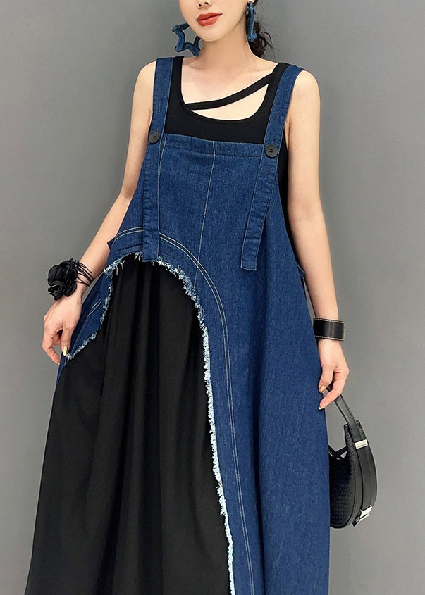 Denim Blue Patchwork Robe Dresses Asymmetrical Summer