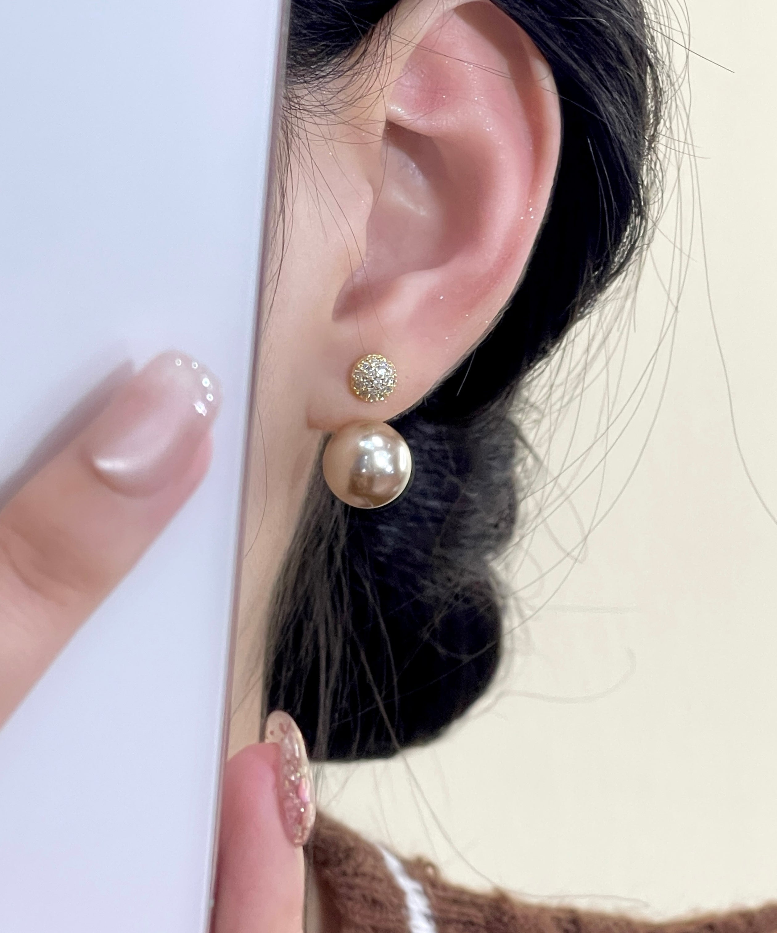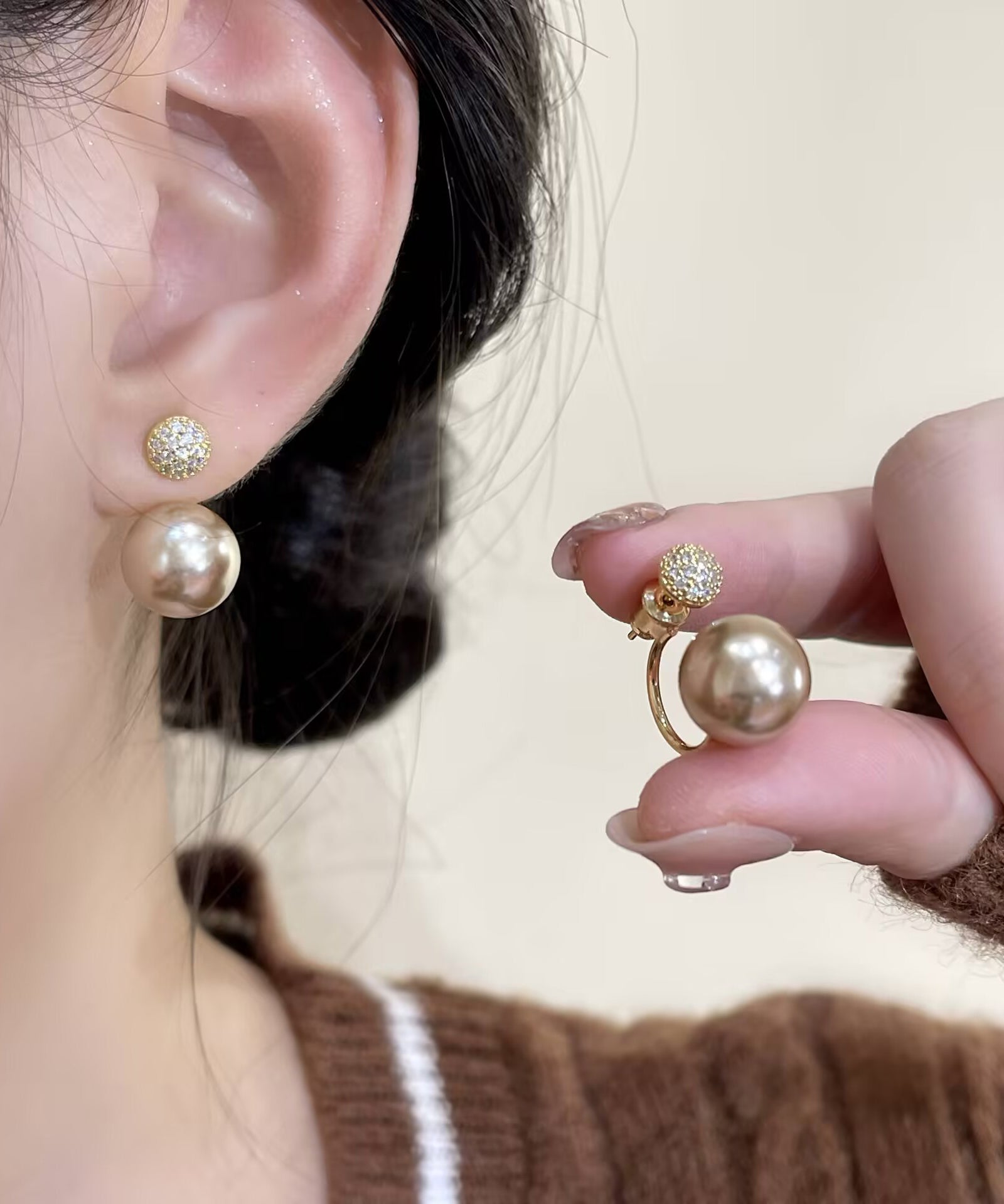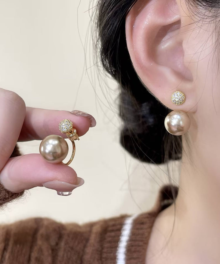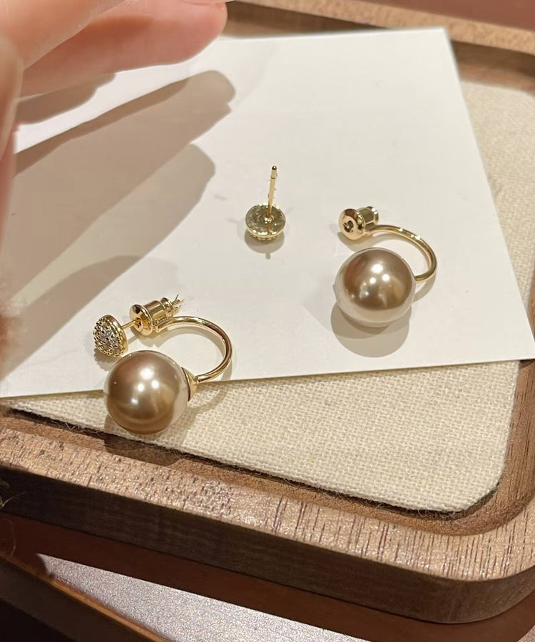 DIY Champagne Sterling Silver Overgild Zircon Pearl Hoop Earrings