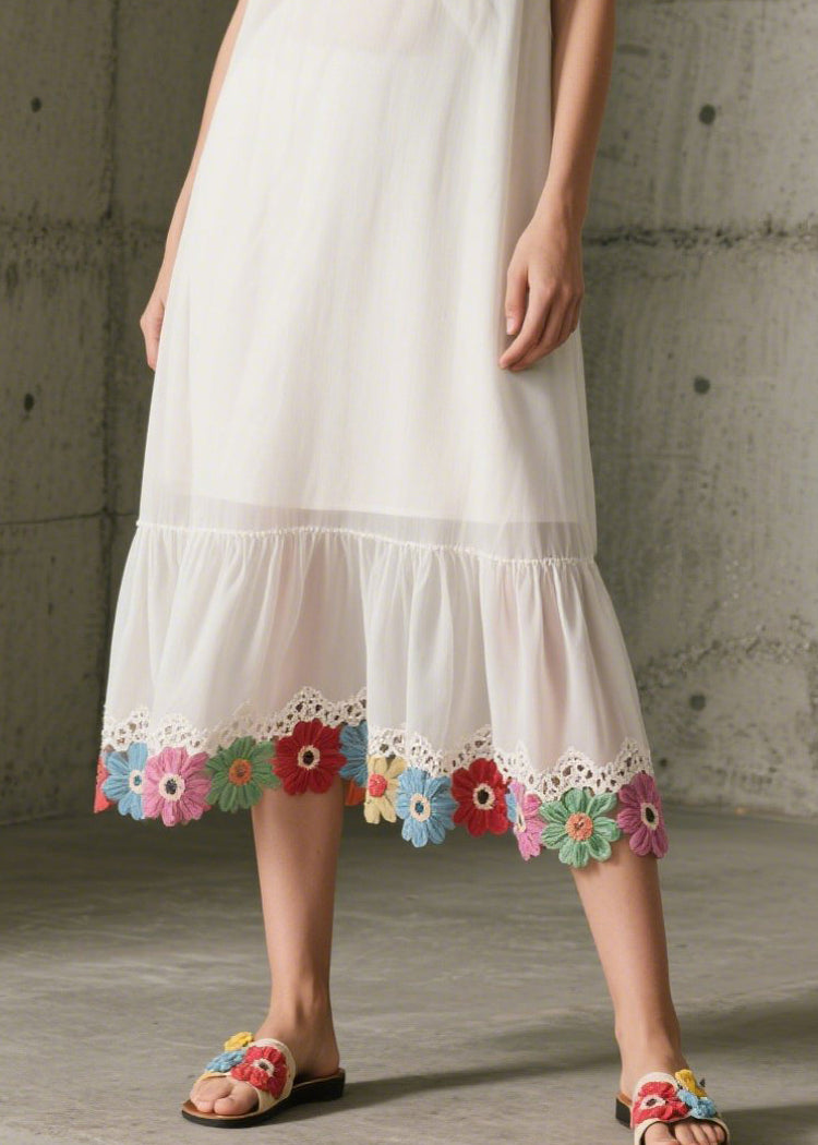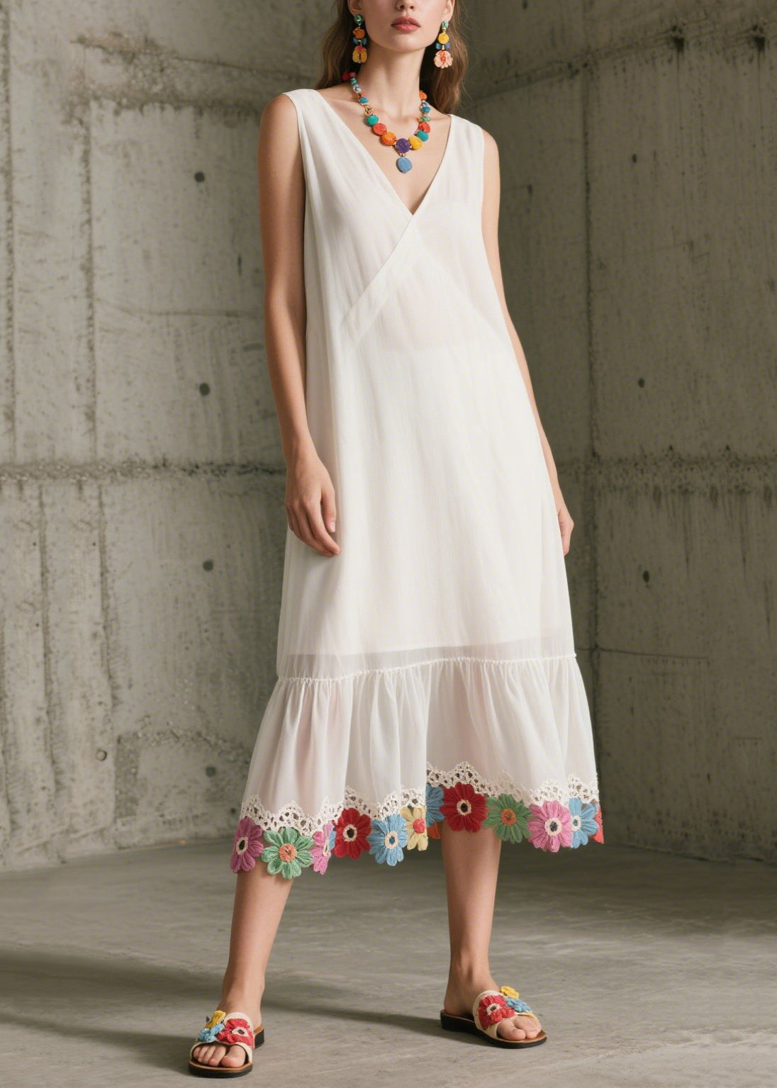 DIY White V Neck Patchwork Lace Chiffon Maxi Dresses Sleeveless