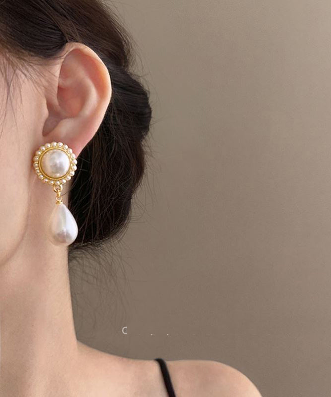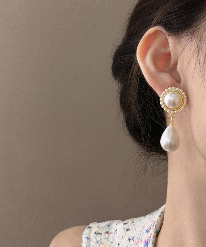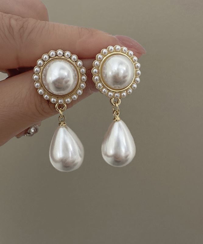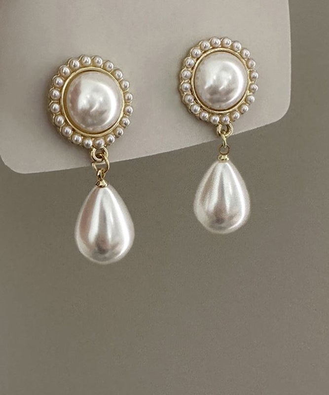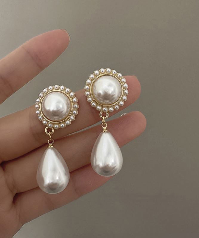 Elegant White Sterling Silver Alloy Water Drop Pearl Drop Earrings