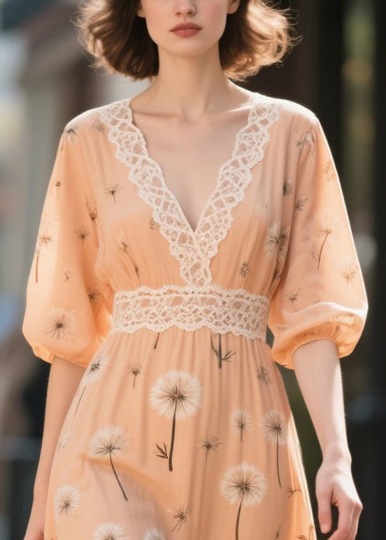 Fashion Orange Print Patchwork Chiffon Long Dress Summer