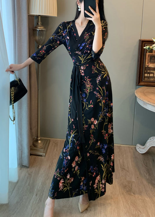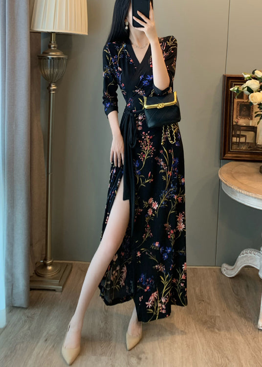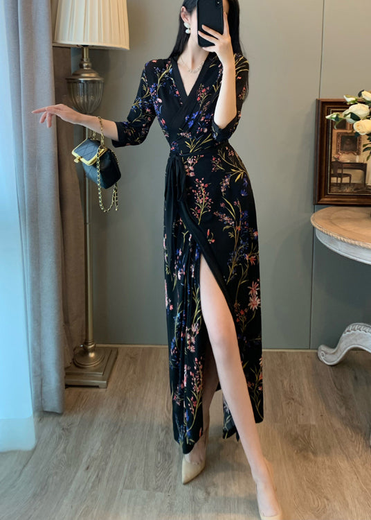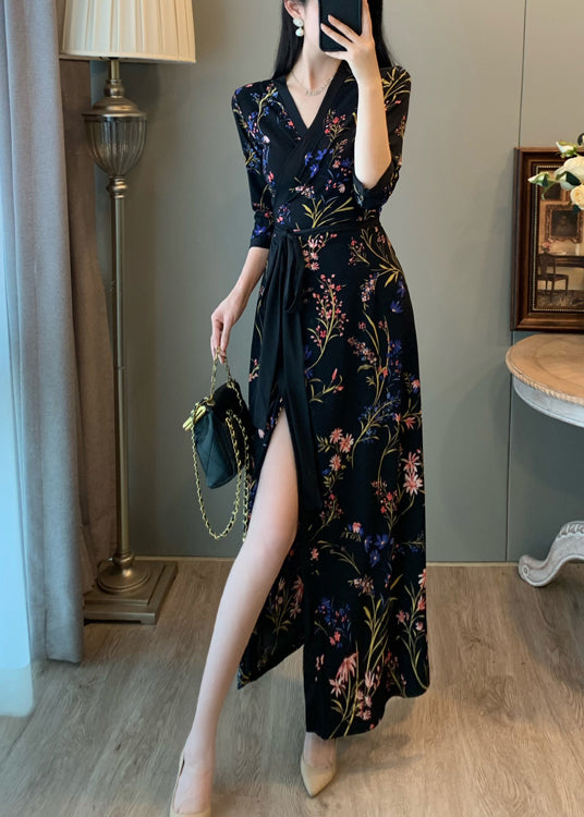 Fitted Black Tunic Print Side Open Long Dresses Summer