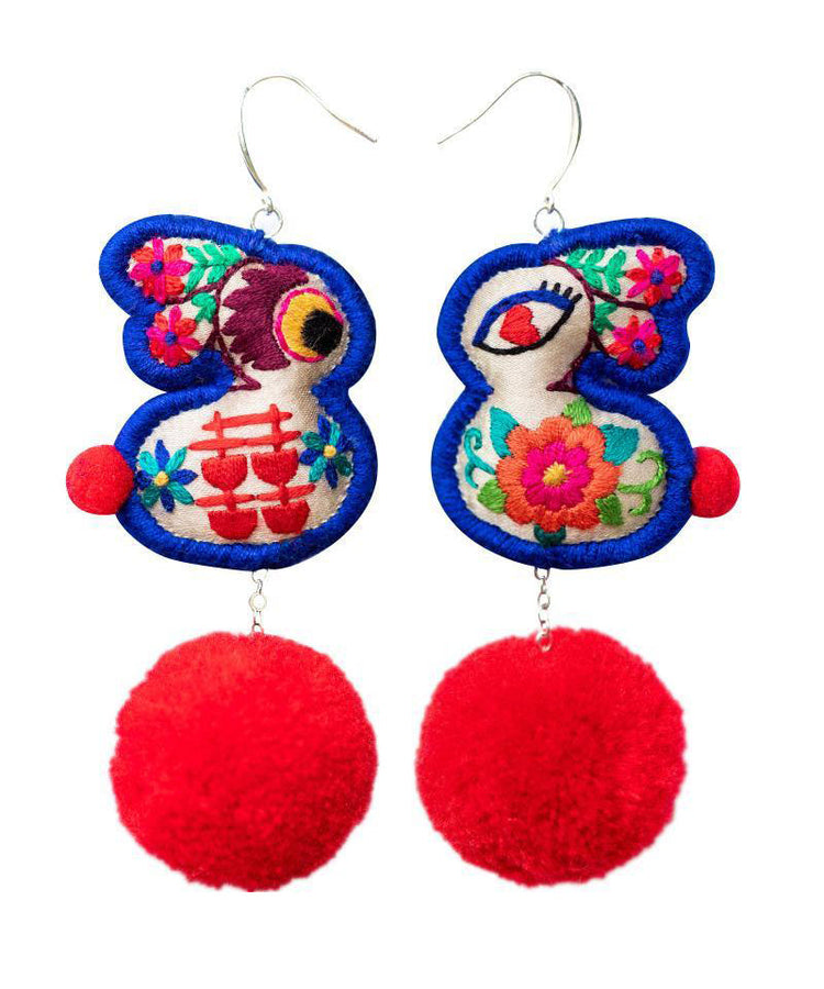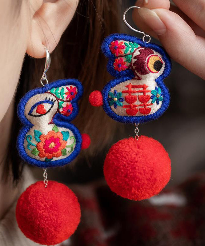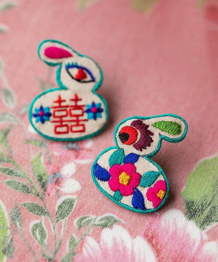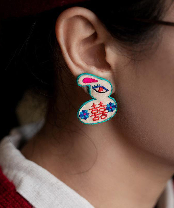Handmade Rainbow Embroidery Little Rabbit Stud Earrings