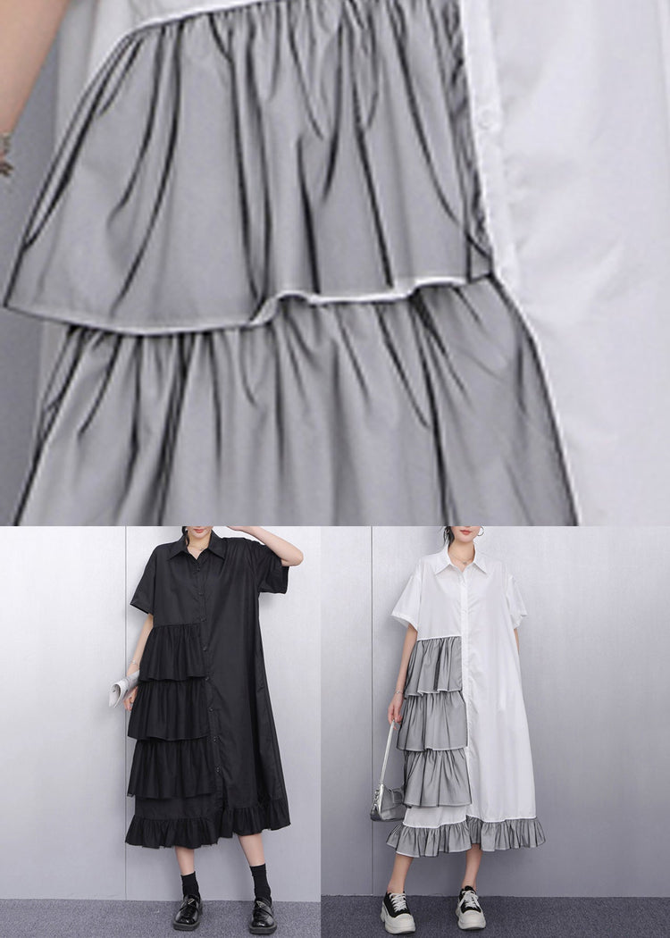 Handmade White Ruffled Patchwork Maxi Dress Short Sleeve
