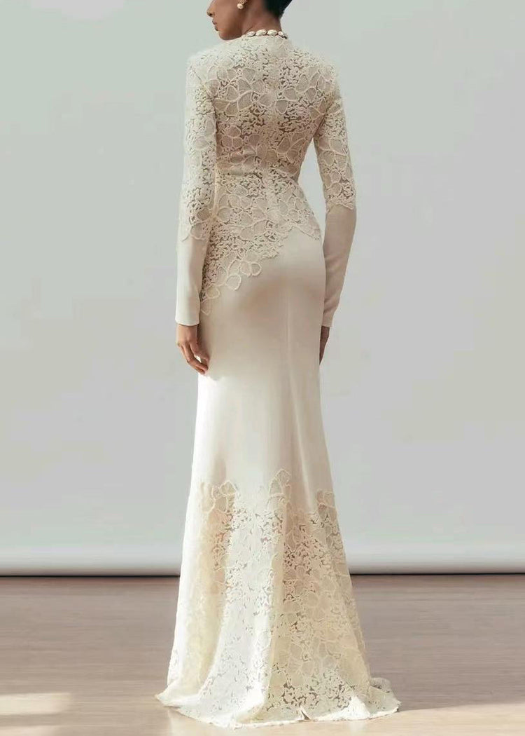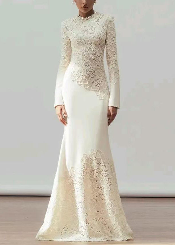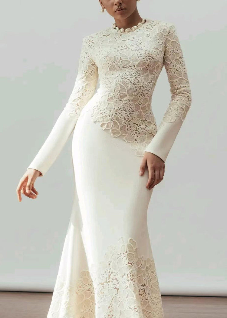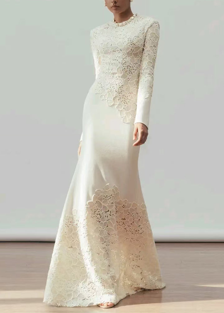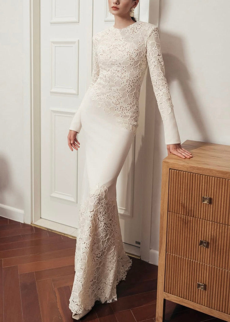 Handmade White Sequins Patchwork Cotton Party Dress Fall