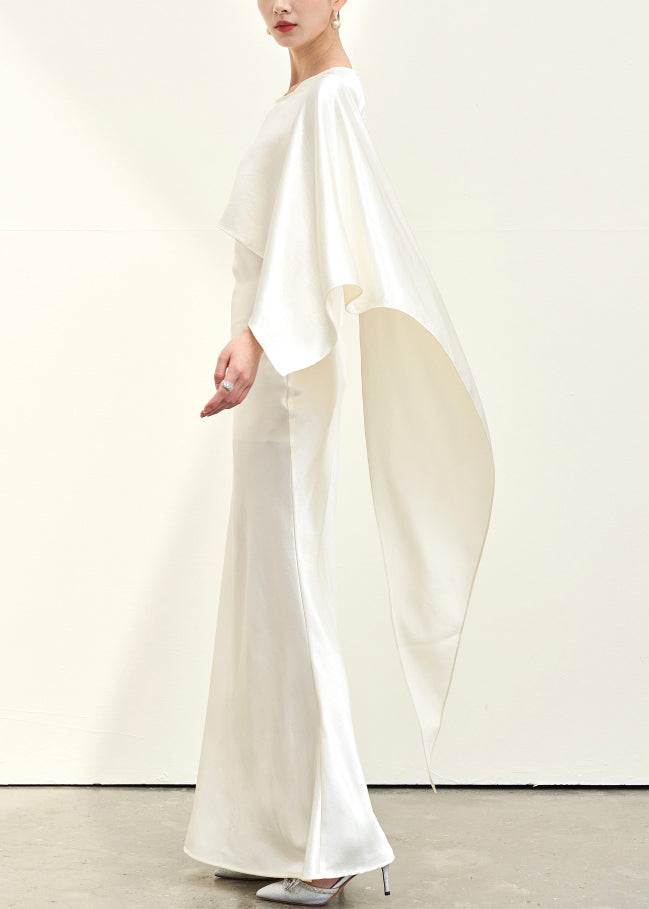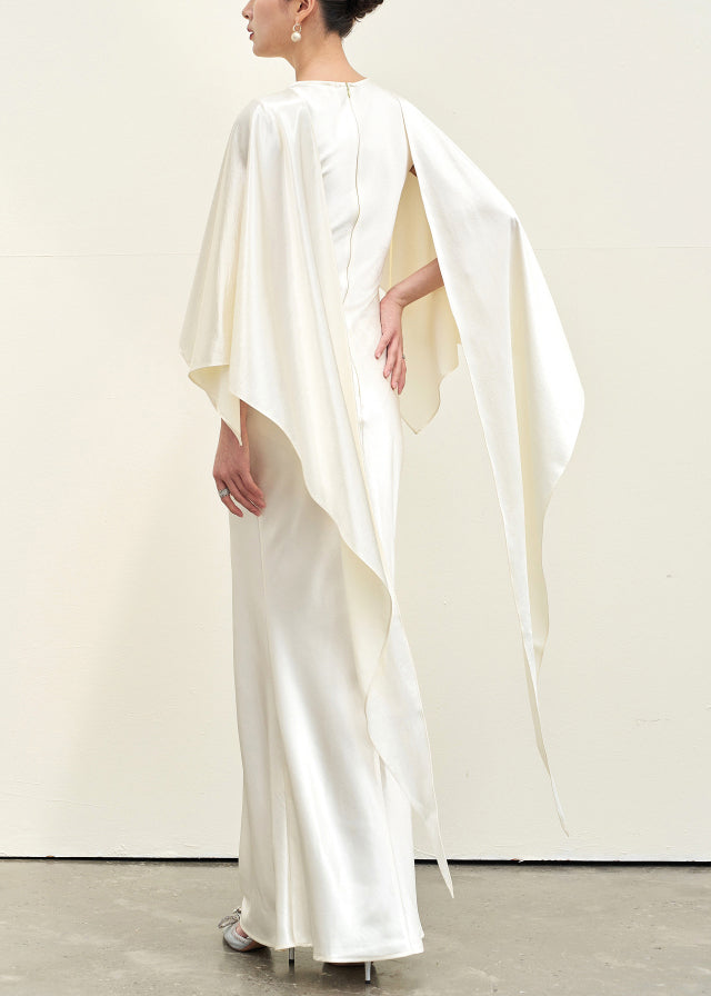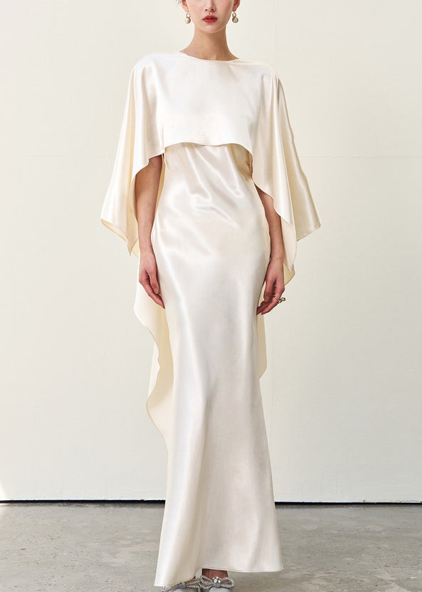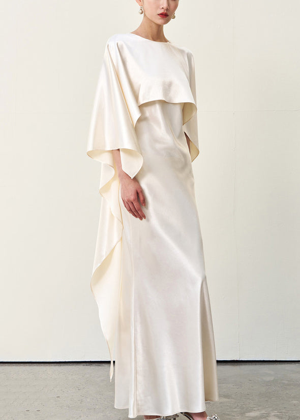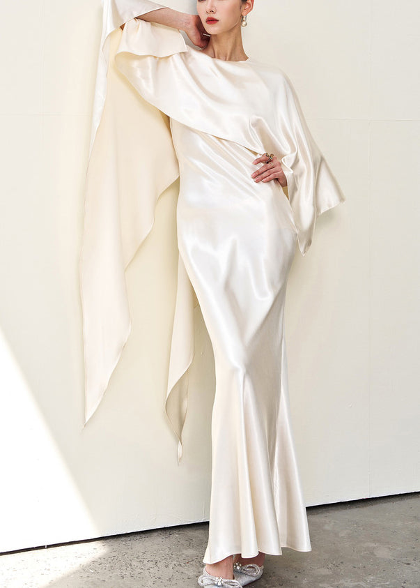 Italian Beige Asymmetrical Solid Silk Long Dress Summer