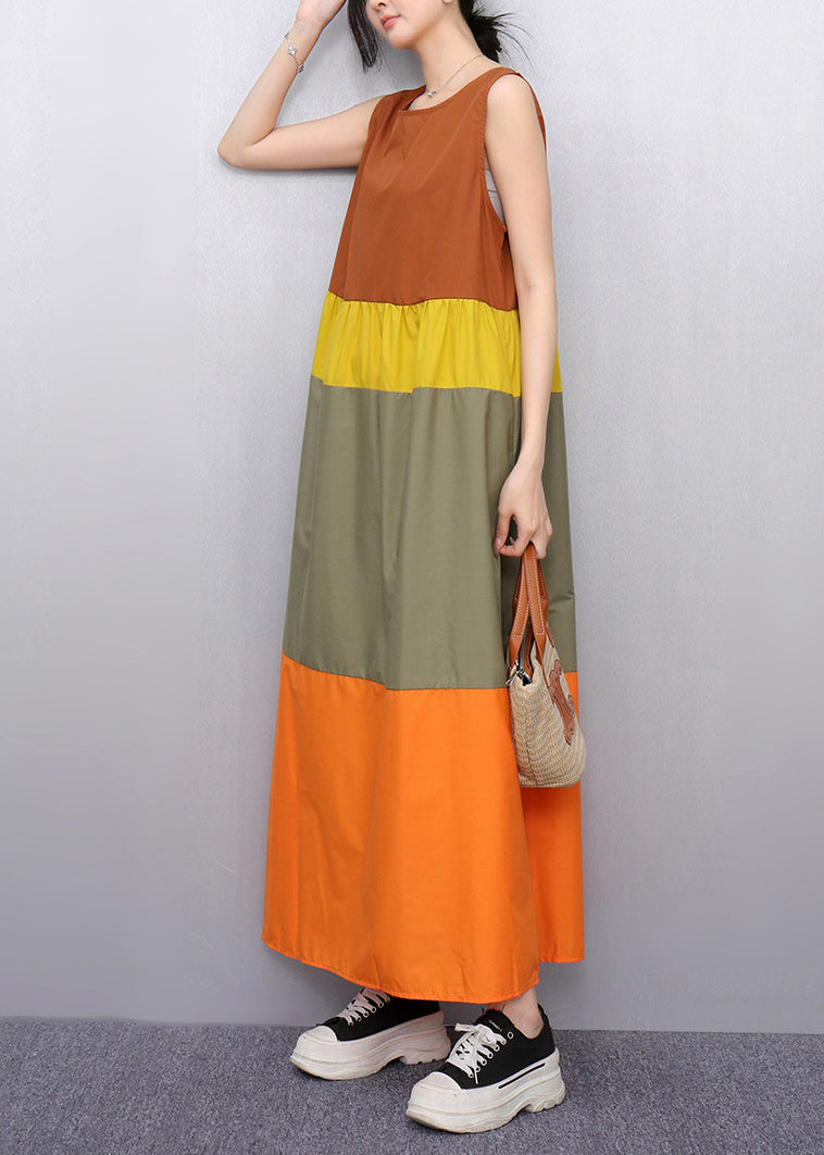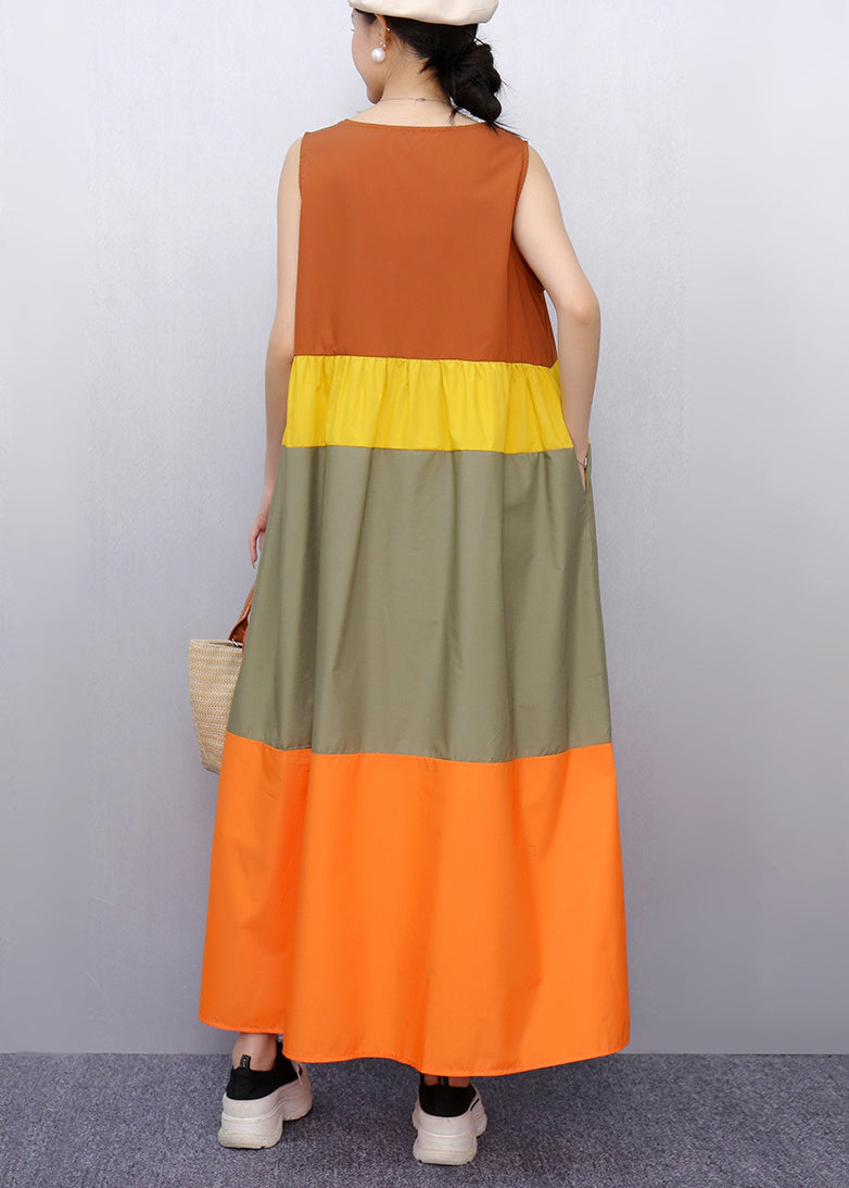 Italian Orange Oversized Patchwork Cotton A Line Dress Sleeveless