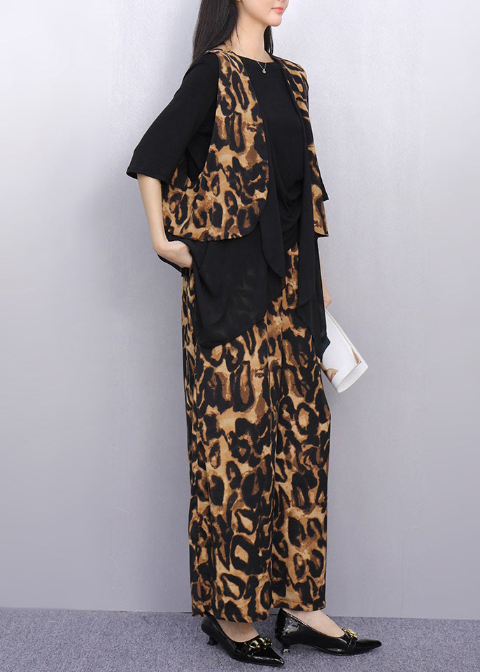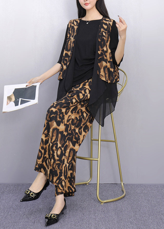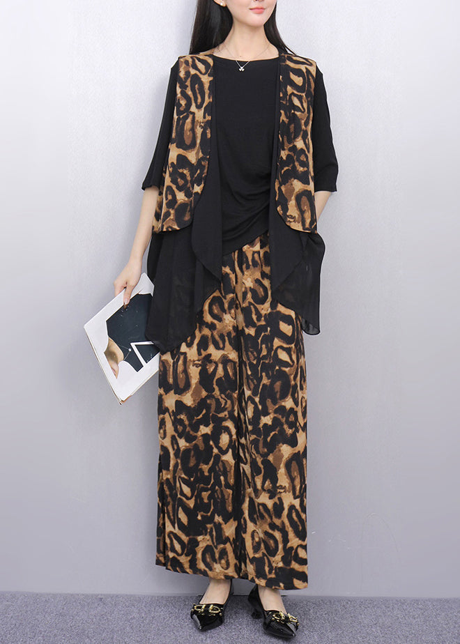Leopard Print Patchwork Two Piece Suit Set Asymmetrical Summer