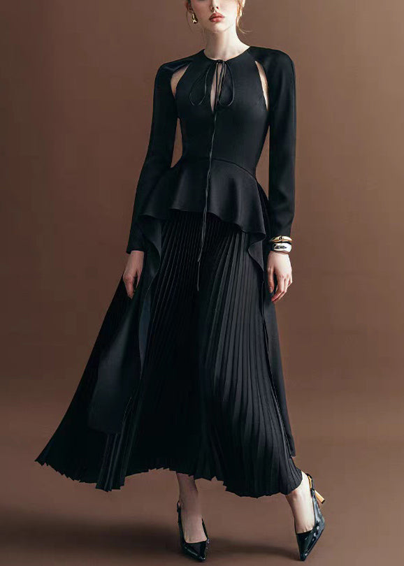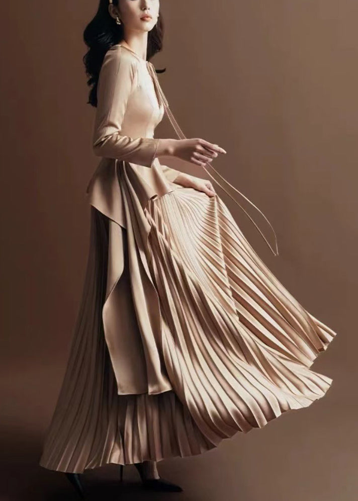 Novelty Khaki Wrinkled Lace Up Silk Long Dress Fall