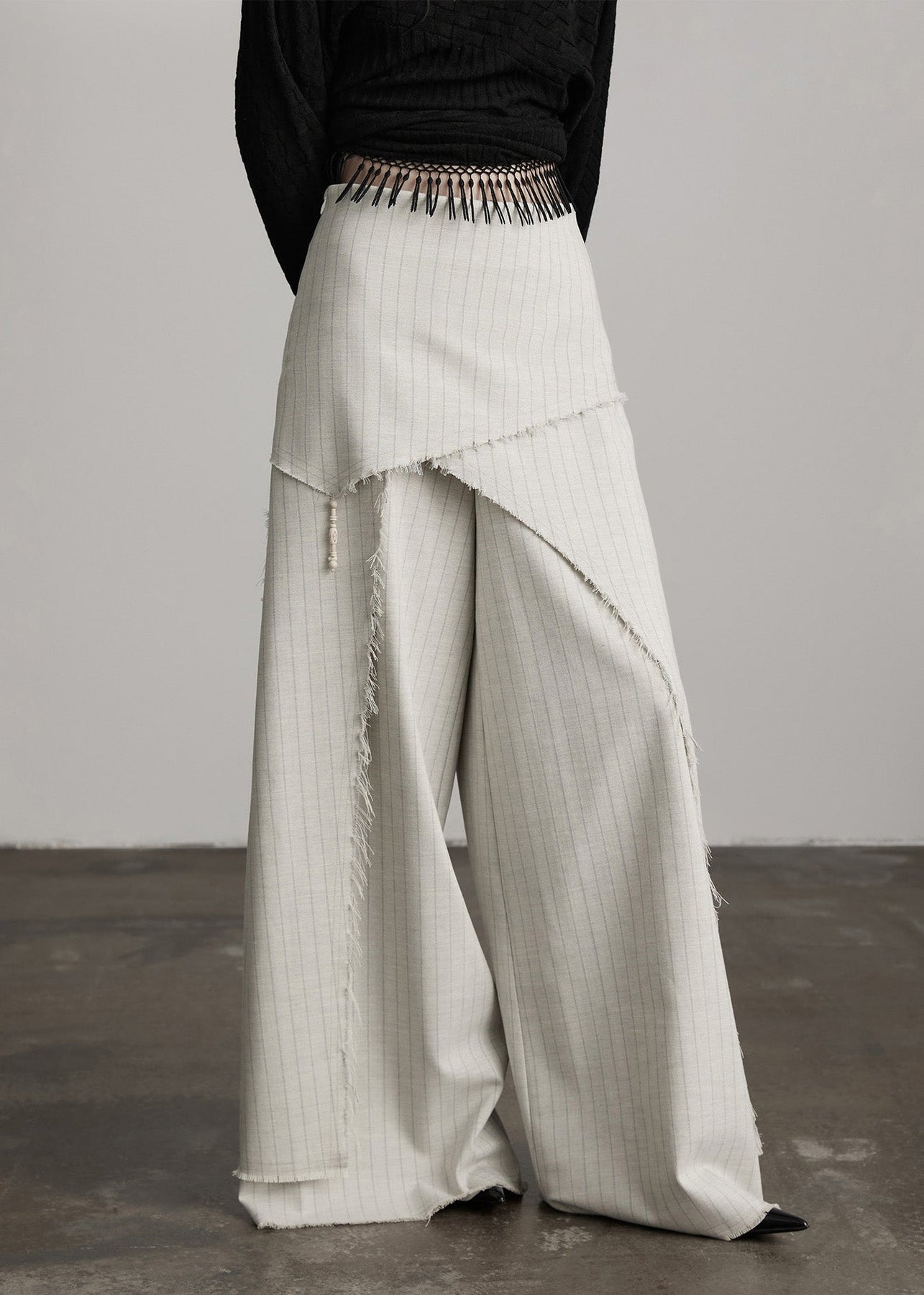 Original Design Apricot Asymmetrical Striped Cotton Pants Skirts Spring