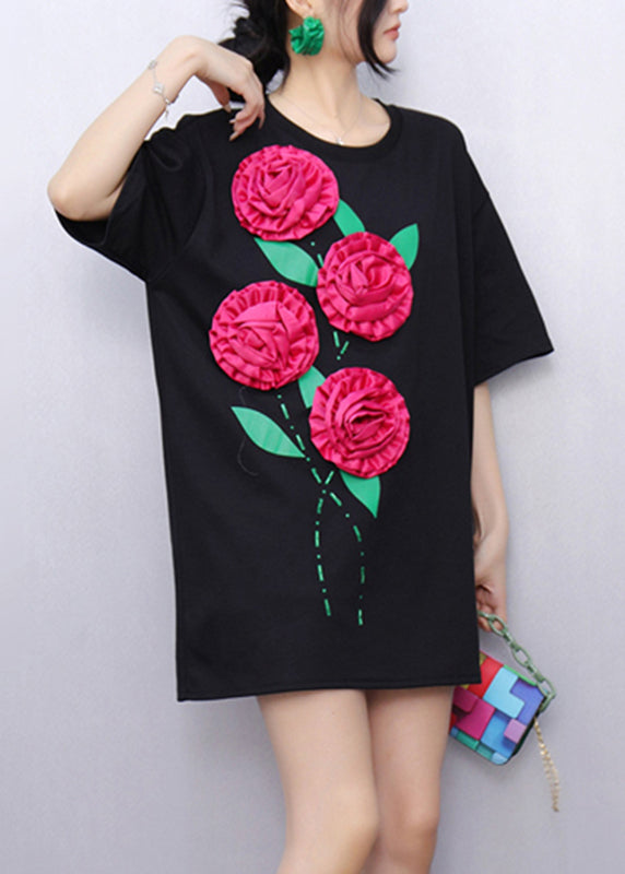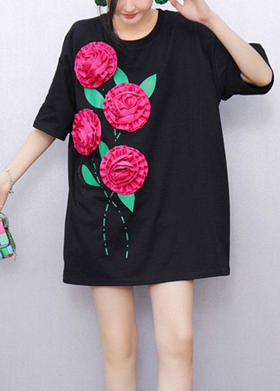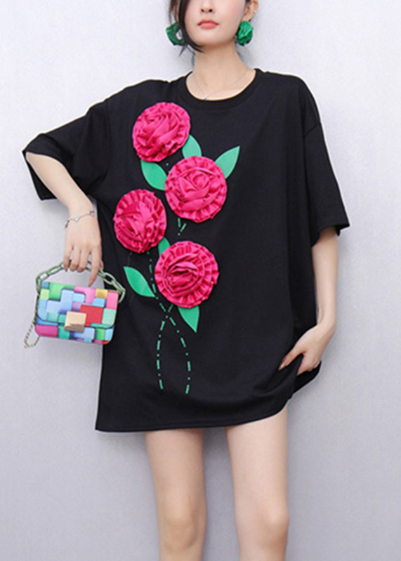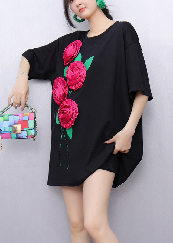 Original Design Black Floral T Shirts Summer