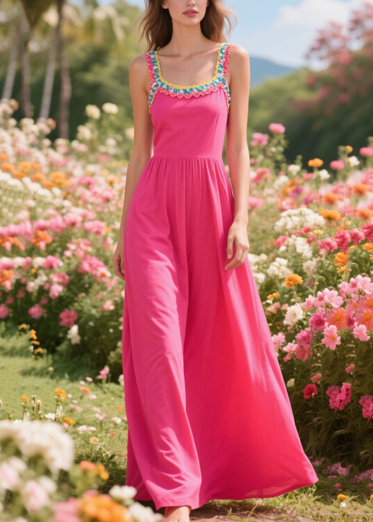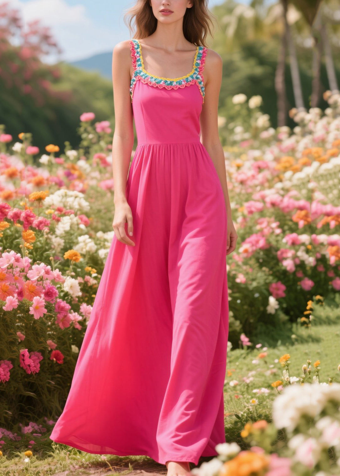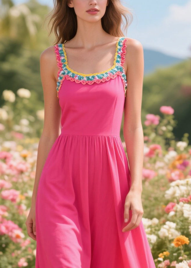 Plus Size Rose Patchwork Lace Cotton Robe Dresses Summer