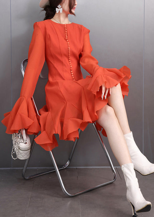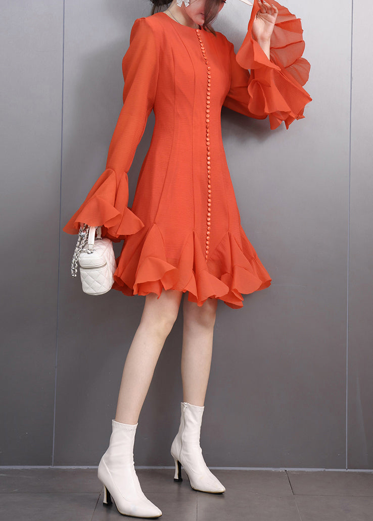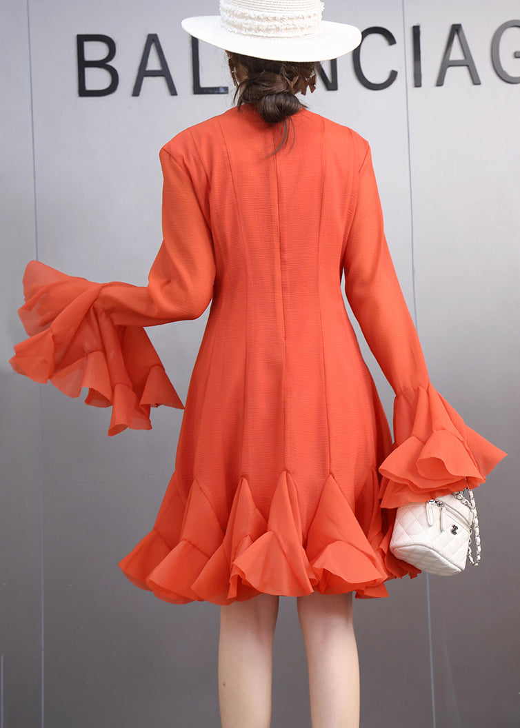 Silm Fit Orange Exra Large Hem Chiffon Party Dress Flare Sleeve