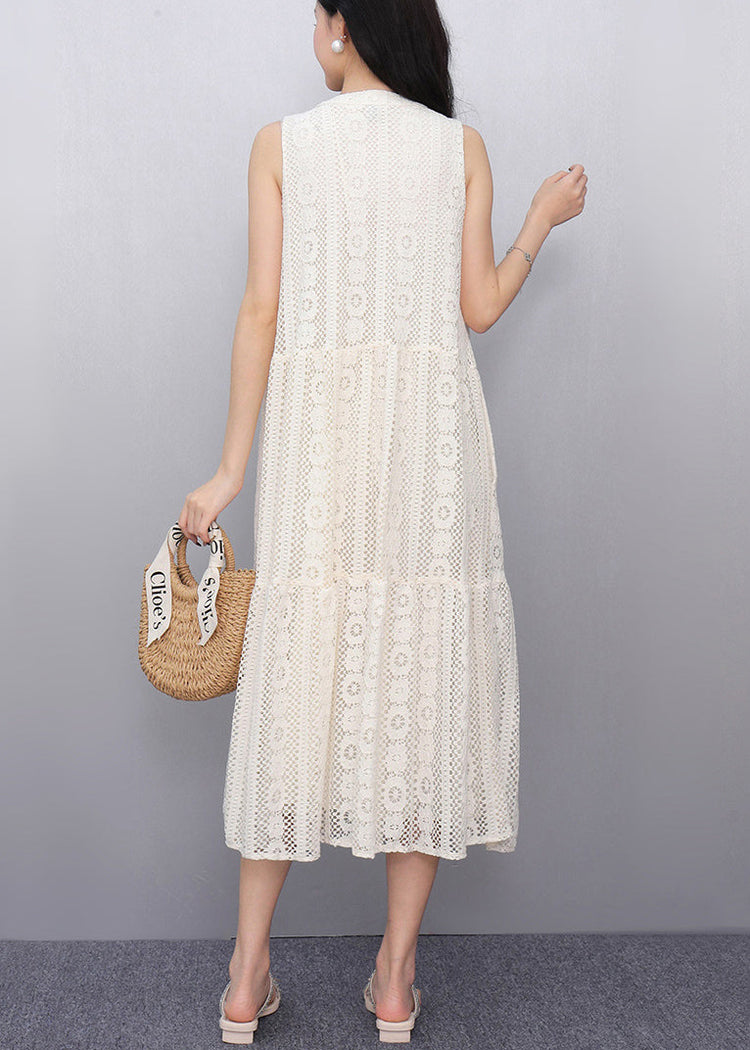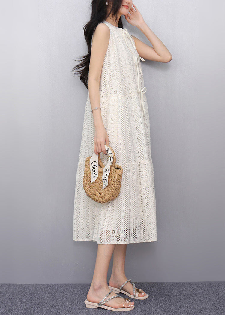 Simple White Hollow Out Tulle A Line Dress Sleeveless
