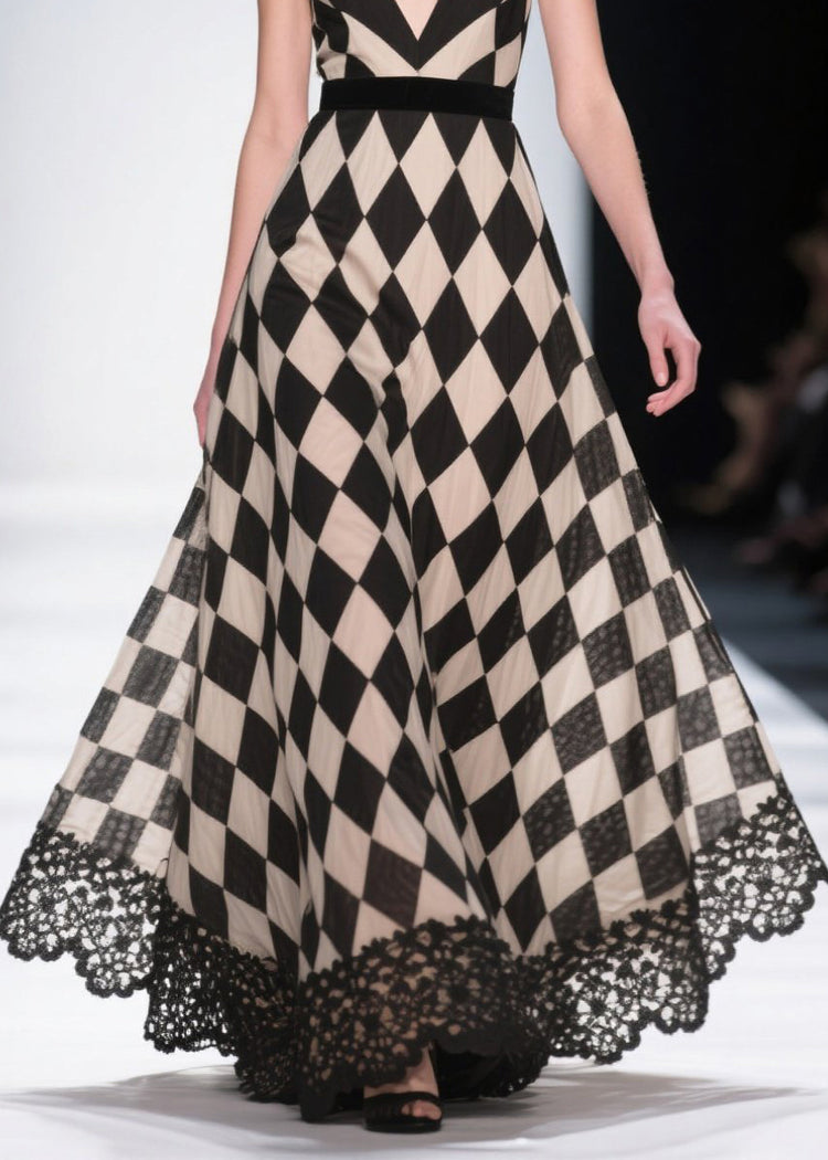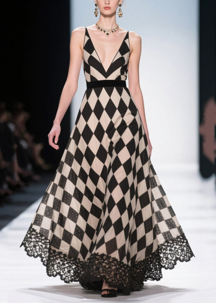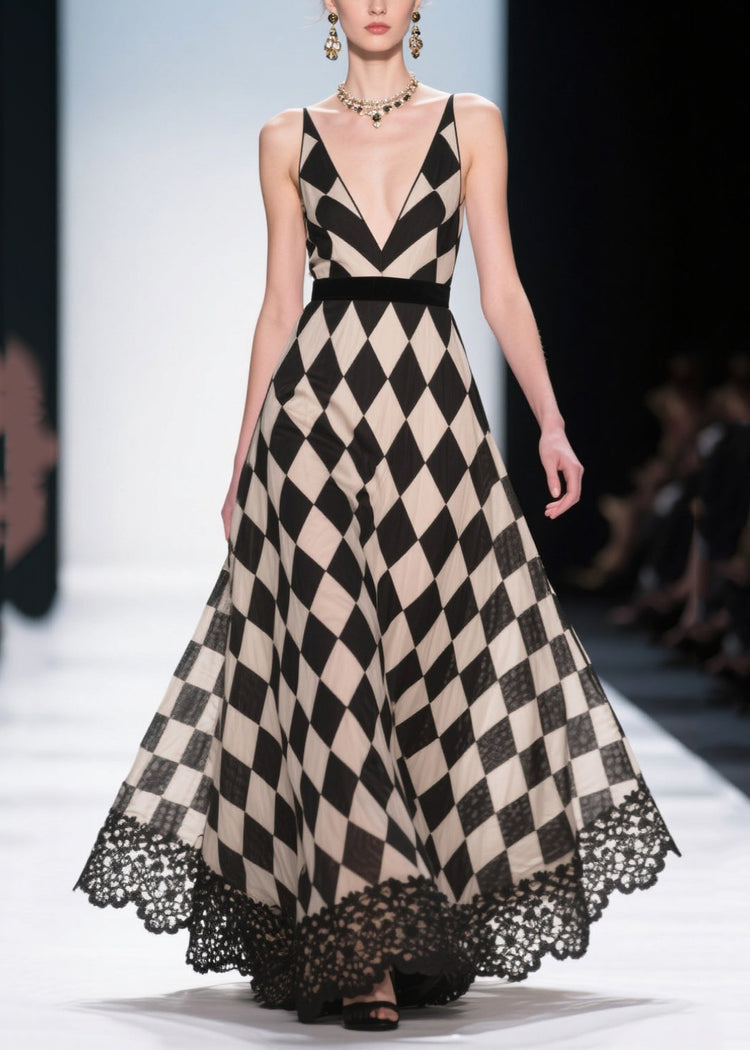 Style Black Plaid Patchwork Lace Chiffon Evening Dress Summer