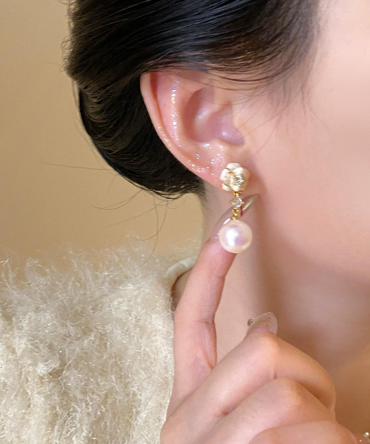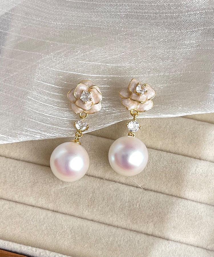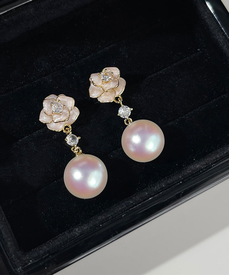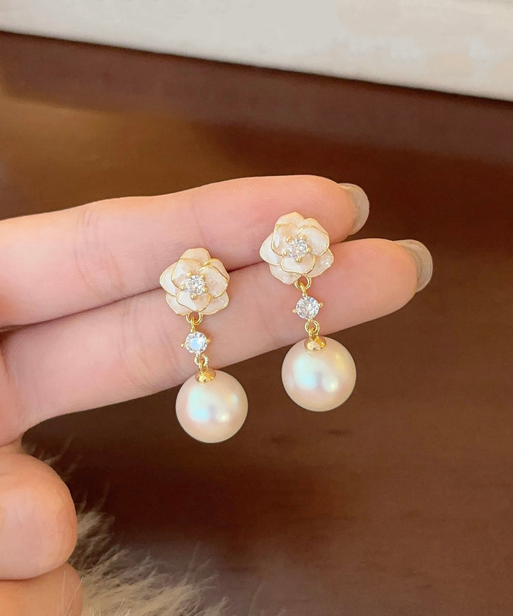 Stylish Copper Overgild Zircon Pearl Floral Drop Earrings