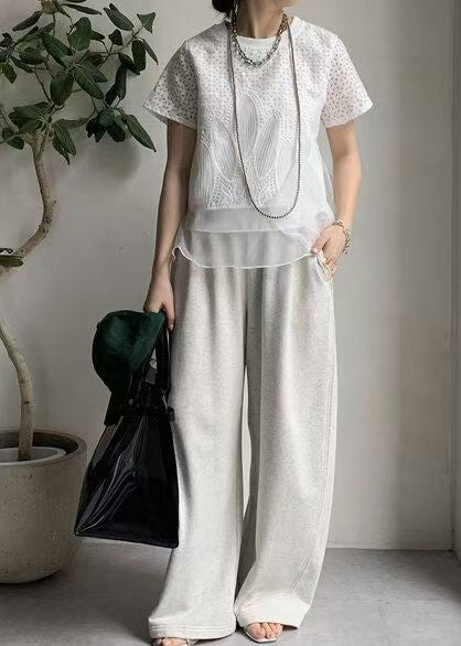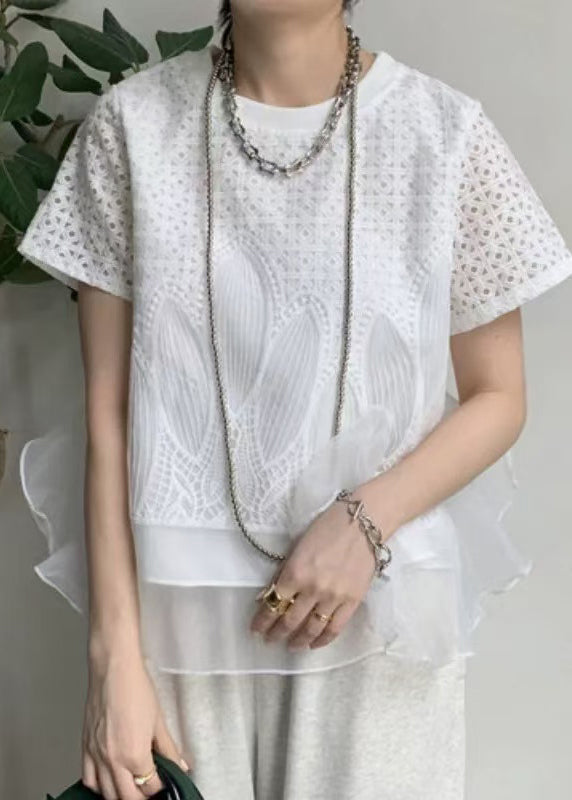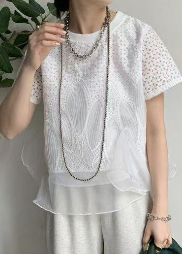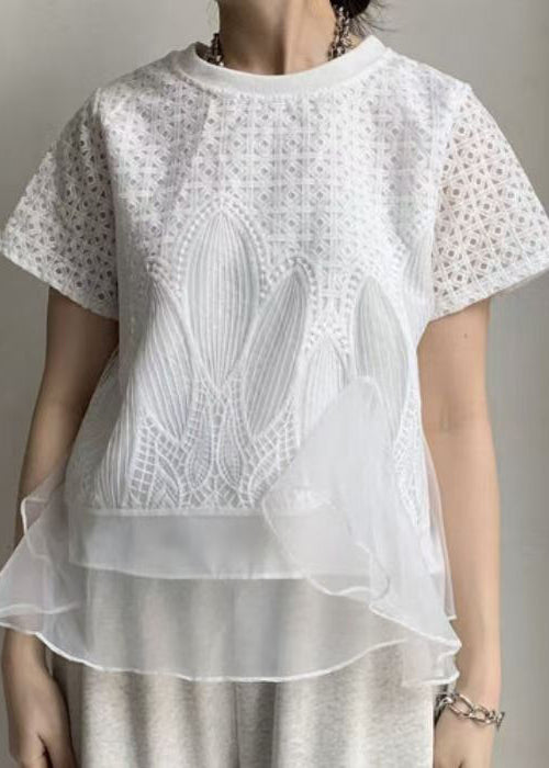 White Patchwork Organza Tops Embroideried Summer