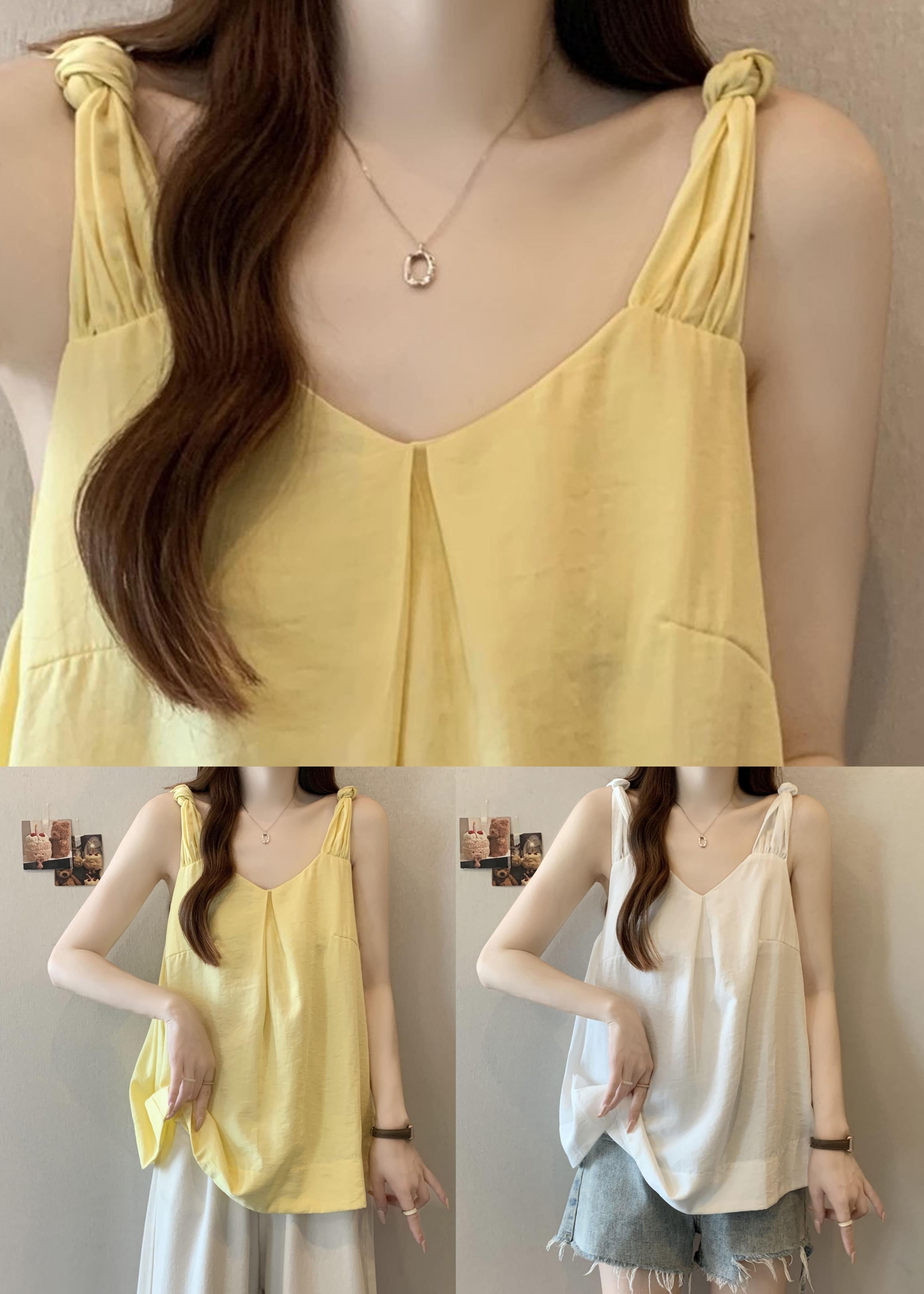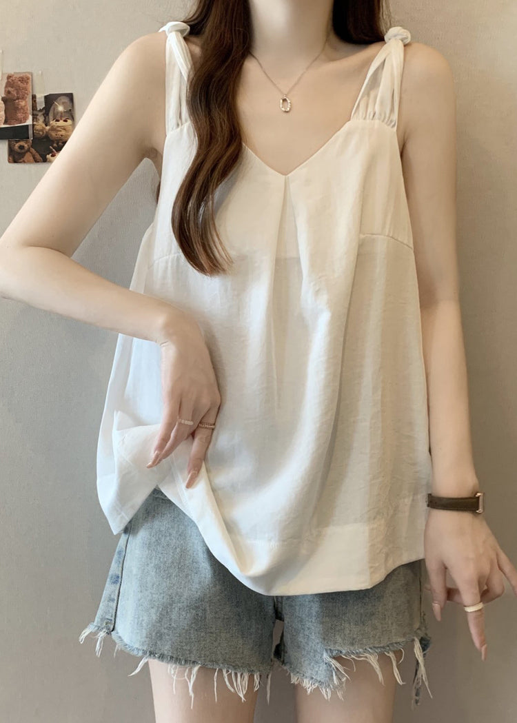 White Wrinkled Solid Cotton Tank V Neck Summer