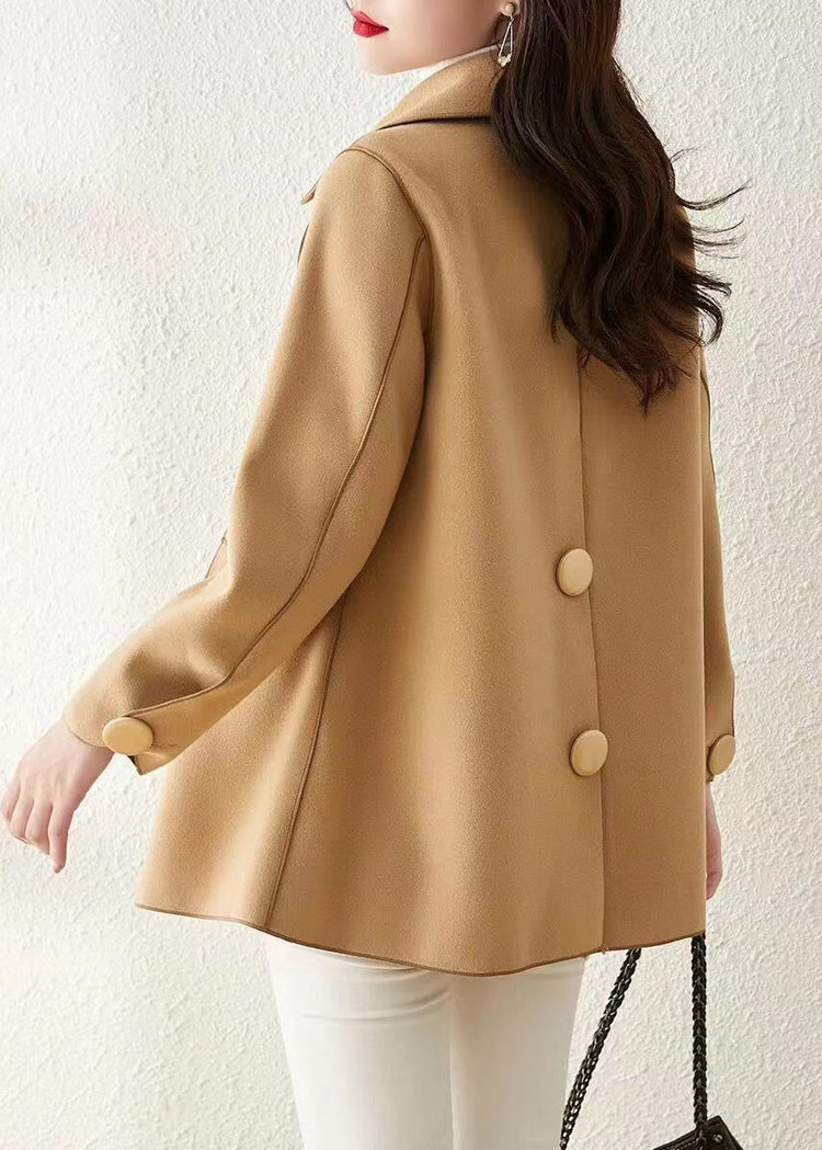 Beautiful Khaki Peter Pan Collar Button Patchwork Woolen Coat Fall