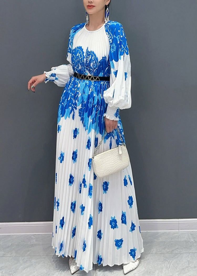 Boutique Blue Oversized Print Pleated Dress Fall