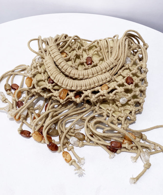 Casual Beige Tasseled Nail Bead Woven Tote Handbag