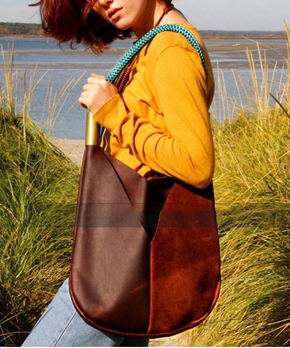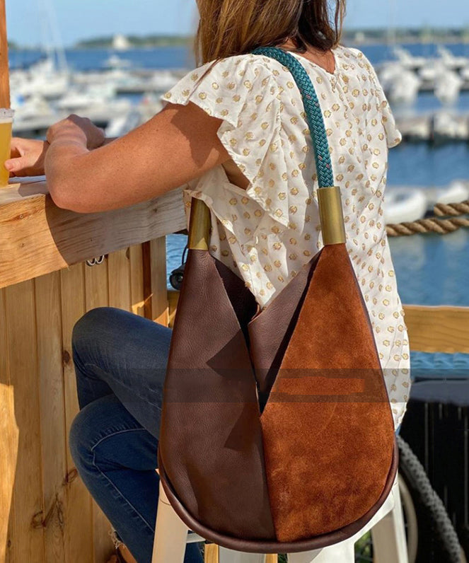 Boho Brown Solid Durable Faux Suede Saddle Bag