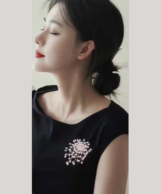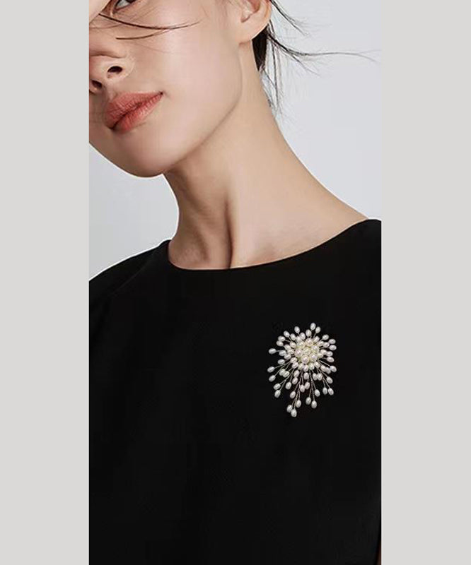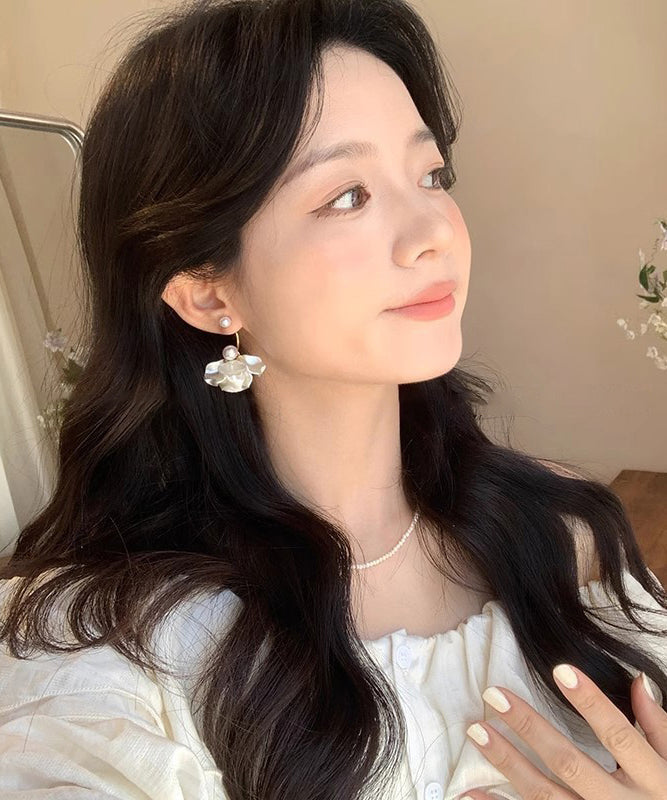 Classy White Sterling Silver Overgild Pearl Floral Drop Earrings