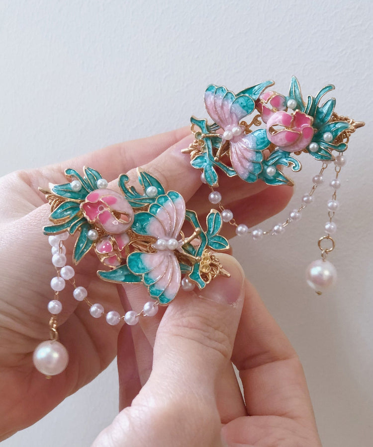 Chinese Style Purple Alloy Pearl Cloisonne Enamel Tassel A Pair Hairpin