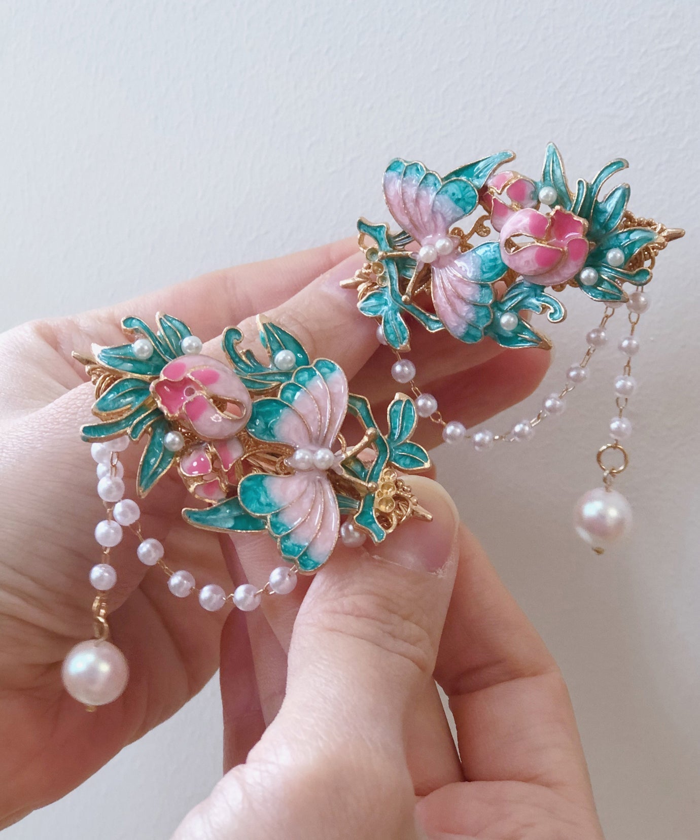 Made of fine Alloy Pearl Cloisonne Enamel Tassel A Pair.